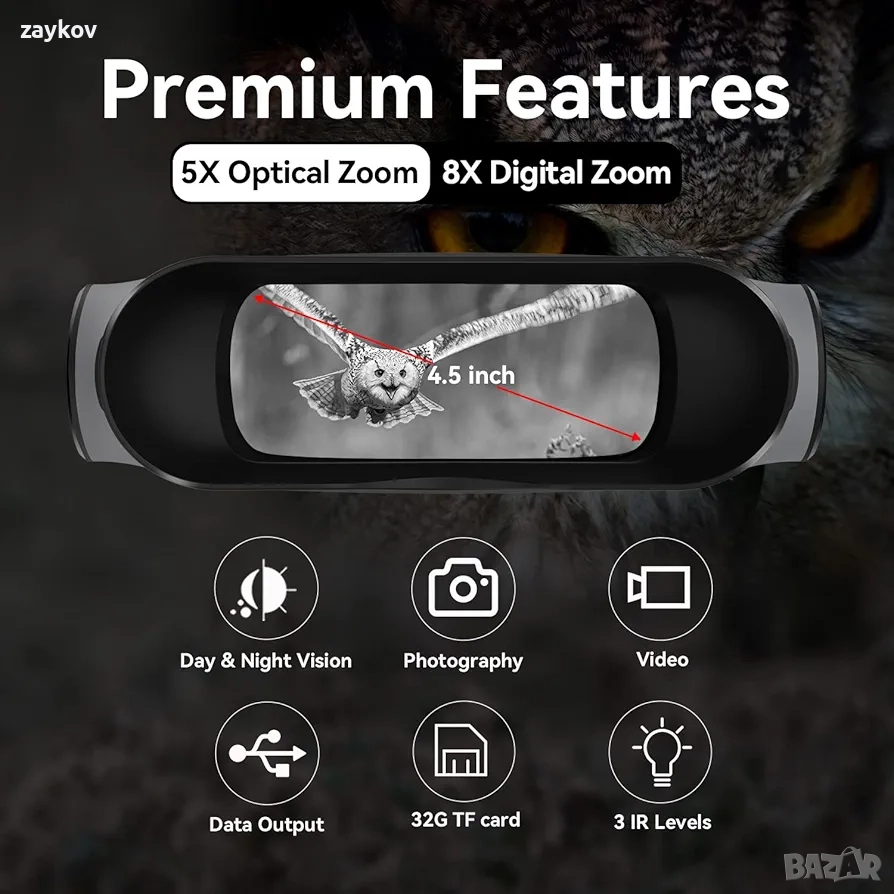 Бинокъл за нощно виждане MiLESEEY, инфрачервен цифров нощен поглед, 4.5” LCD
