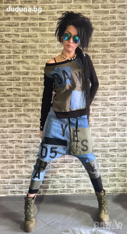 Страхотен дамски сет дънкови потури и блуза с деним в нашия див стил!