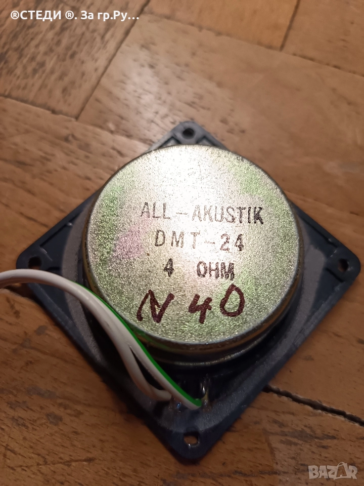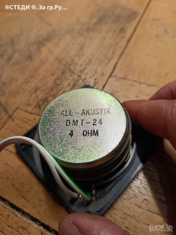 високочестотен говорител (пищялка) ALL Akustik DMT-24. Импеданс: 4 ома Размери: 7 см х 7 см Състояние: Използвано, но напълно функционално.