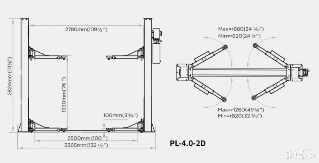 Двуколонен електромеханичен подемник 4 тона 100 – 1930 мм RockForce