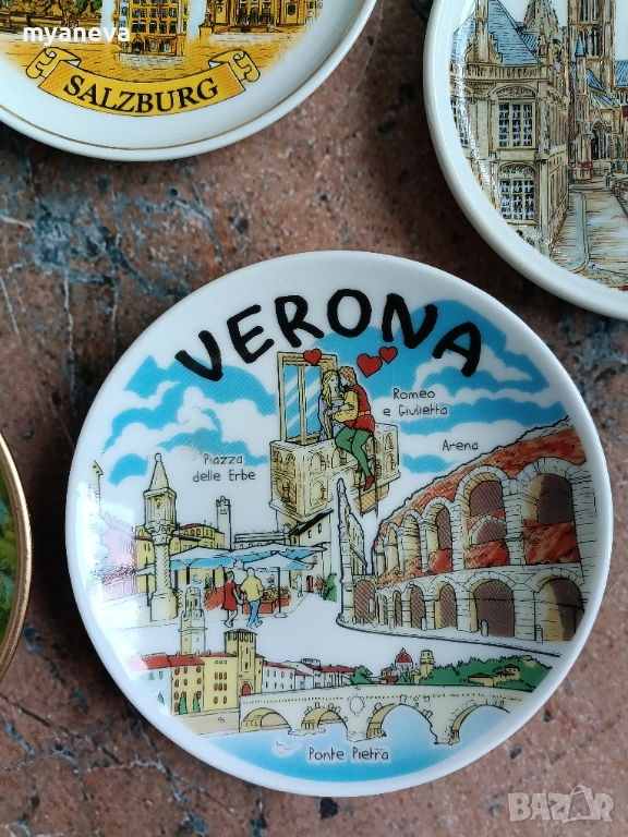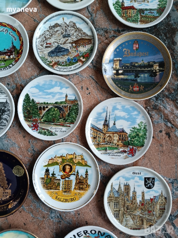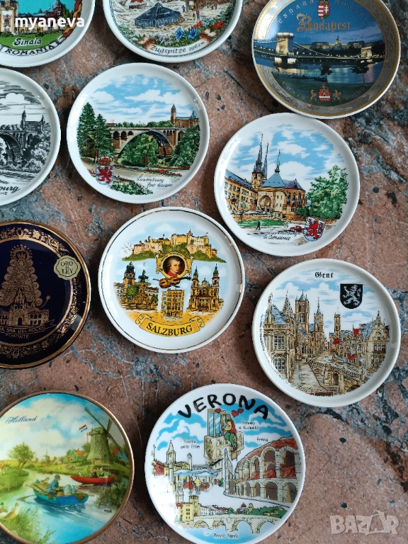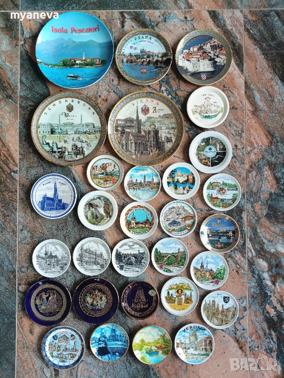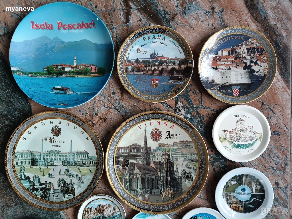 Колекция от порцеланови , декоративни, сувенирни чинии от различни градове и забележителности → Обява 52869409