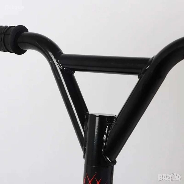 Тротинетка за трикове с метална спирачка и гумени ръкохватки.