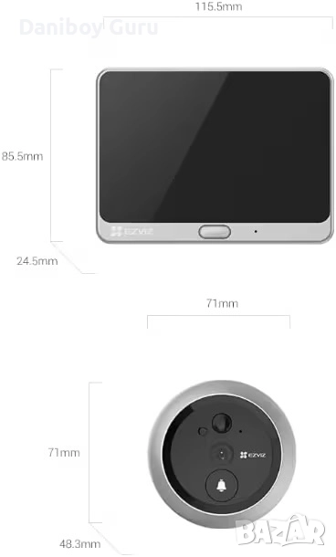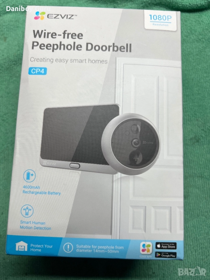 Wi Fi Смарт видео звънец Ezviz CP4, Двупосочно видео, Full HD, шпионка , App