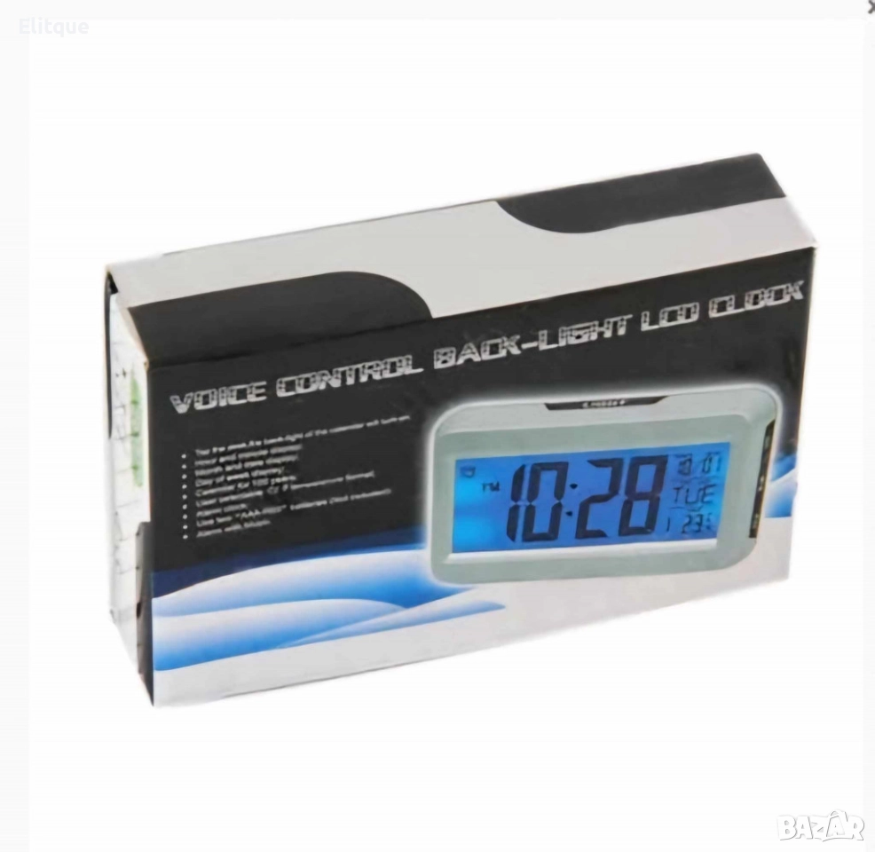 Функций: Термометър, аларма, календар, таймер и гласов контрол за активиране на светлината, часовник активиране светлината на дисплея чрез глас, по-силен звук, почукване на плота или на самият часовник;