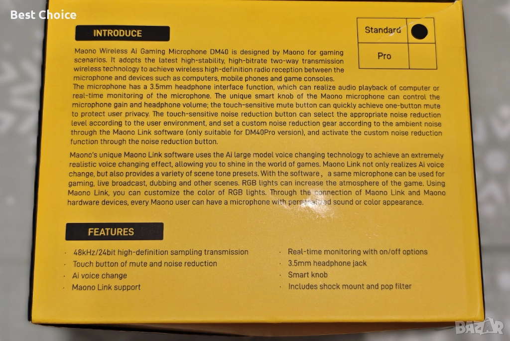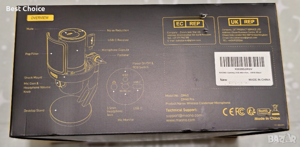 Maono DM40 Pro се отличава със своята хибридна свързаност (USB и безжична), дълъг живот на батерията и интелигентни функции, управлявани чрез софтуера Maono Link.