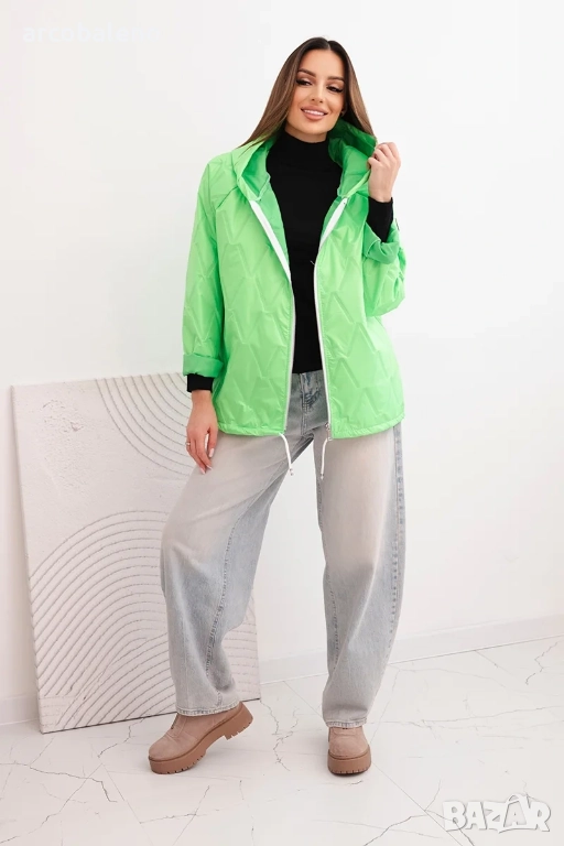 Дамско пролетно ватирано яке с качулка и цип, 9цвята