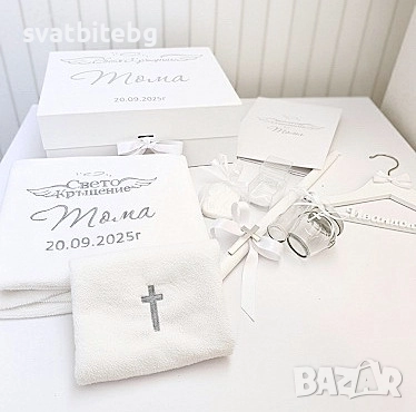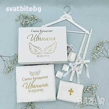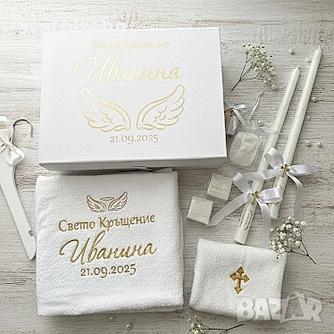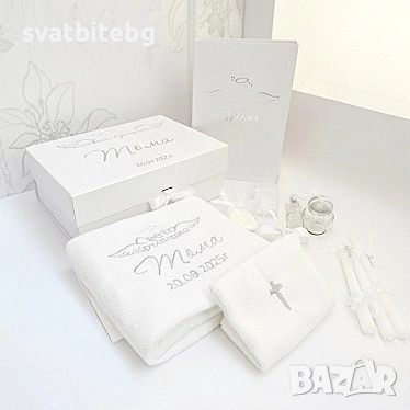 Комплект за кръщене с бродирани хавлии и аксесоари → Обява 52869875