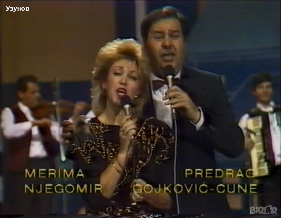 Видеокасета VHS със сръбска музика 180 минути. Новогодишна музикална програма с най-популярните сръбски певци от новогодишната нощ на 1994 г. Записите са правени от сръбски телевизии. Касетата е в перфектно състояние, неразличима от нова. Снимките са реални от касетата.