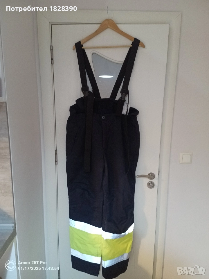Здравейте! На вашето внимание преглагам следния защитен работен панталон най-висок клас https://www.wenaas.com/en/products/multinorm-winter-trousers-navyfluorescent-yellow-0-23549-44502-532 Панталонът има две забалежки, малко зацапано и лекоолющена светлоотразителна част, които са надлежно заснети. За повече информация лс Лек, мек, издръжлив панталон с огнеупорна защита. Зимен панталон с висока талия отзад за предпазване на лумбалната област. Еластичността на талията и подвижните еластични презрамки осигуряват добро прилягане за повечето потребители. Панталонът има много практични джобове, включително джобове за наколенки. Панталонът също е ватиран, с гети за сняг и регулируема ширина на подгъва. EN ISO 11612 - Топлина и пламък. Сертифицирано защитно облекло. EN ISO 11611 - Заваряване и сродни процеси. Сертифицирано защитно облекло. EN ISO 11611 - Заваряване и сродни процеси. Сертифицирано защитно облекло. EN 1149-5 - Електростатични свойства, изисквания за проектиране. Сертифицирано защитно облекло. EN 1149-5 - Електростатични свойства, изисквания за проектиране. Сертифицирано защитно облекло. EN 13034:2005+A1:2009 - Течни химикали, ограничена защита Сертифицирано защитно облекло. EN 13034:2005+A1:2009 - Течни химикали, ограничена защита Сертифицирано защитно облекло. EN 343 - Защитно облекло, сертифицирано за дъжд. EN 343 - Защитно облекло, сертифицирано за дъжд. EN 342 - Защитно облекло със сертификат за студ. EN 342 - Защитно облекло със сертификат за студ. EN ISO 20471 Предупредително облекло с висока видимост. Сертифицирано защитно облекло. EN ISO 20471 Предупредително облекло с висока видимост. Сертифицирано защитно облекло. EN 61482 Защитно облекло срещу термичните опасности от електрическа дъга EN 61482 Защитно облекло срещу термичните опасности от електрическа дъга Информация