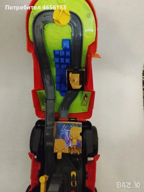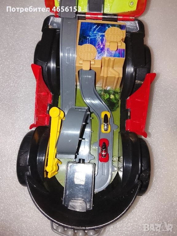 Когато се разтвори , представлява мини писта с малки колички , а затворена е кола с големи гуми