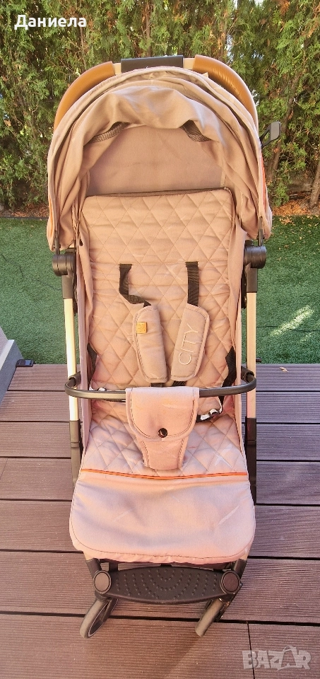 лятна количка на Chipolino - Сити е стилна, удобна и функционална. Моделът е подходящ за деца от 0 до 36 месеца или до достигането на 15 kg. Тя е изключително лека със своята алуминиева рама и цялата количката тежи само 7 kg. Детайли за продукта: Многопозиционна облегалка, която се регулира според нуждите на детето; Предпазен борд, който се сваля; 5-точков предпазен колан с меки раменни подложки; Сенник с прозорец за наблюдение, солидна козирка и възможност за регулиране; Поставка за крачета, която се регулира; Удобна дръжка от висококачествен материал; Голяма кошница за покупки; Количката се сгъва автоматично с една ръка; Дръжка за дърпане когато количката е сгъната; Всички колела са с амортисьори; Задни колела със свързана спирачка. Количката е произведена в съответствие с Европейски стандарт EN1888-1. Характеристики: Тегло на количката: 7 kg; Размери в разгънато положение: 85 х 49 х 103 cm; Размери в сгънато положение: 65 х 43 х 40 cm; Размери на седалката: 70 x 32 cm