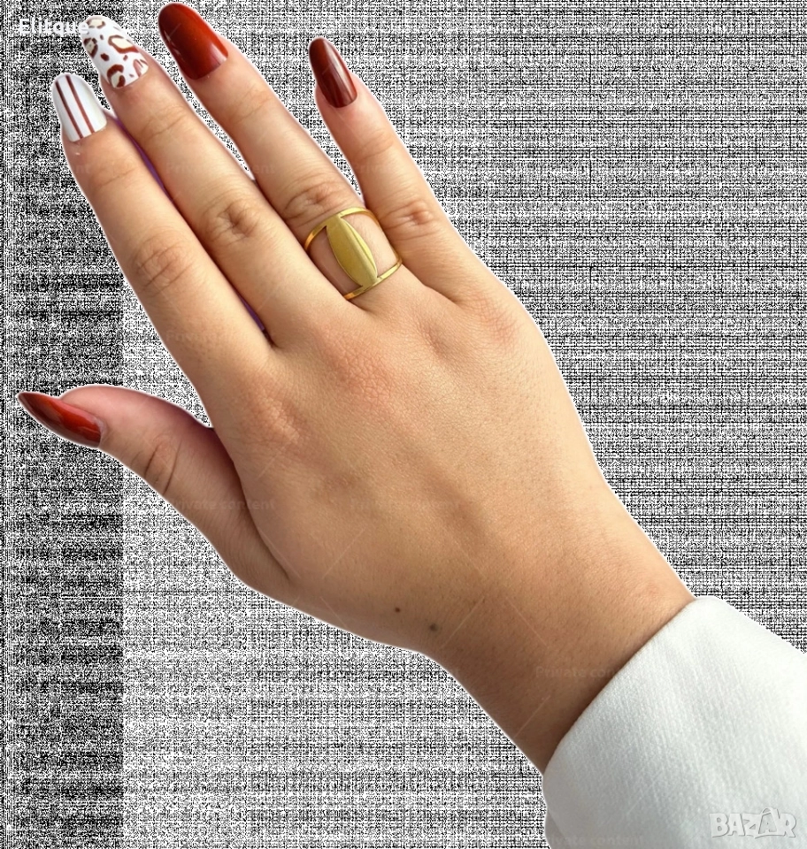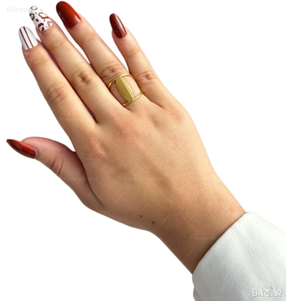Пръстенът е създаден по образец на класическия дизайн на Шанел, който е символ на елегантност и престиж. Изработен от висококачествена неръждаема стомана със златисто покритие, пръстенът е устойчив на корозия и осигурява дълготрайност на вашето украшение. Размери: 17, 18, 19, 20.