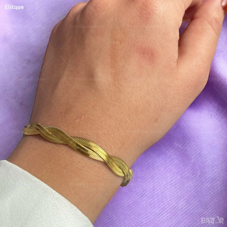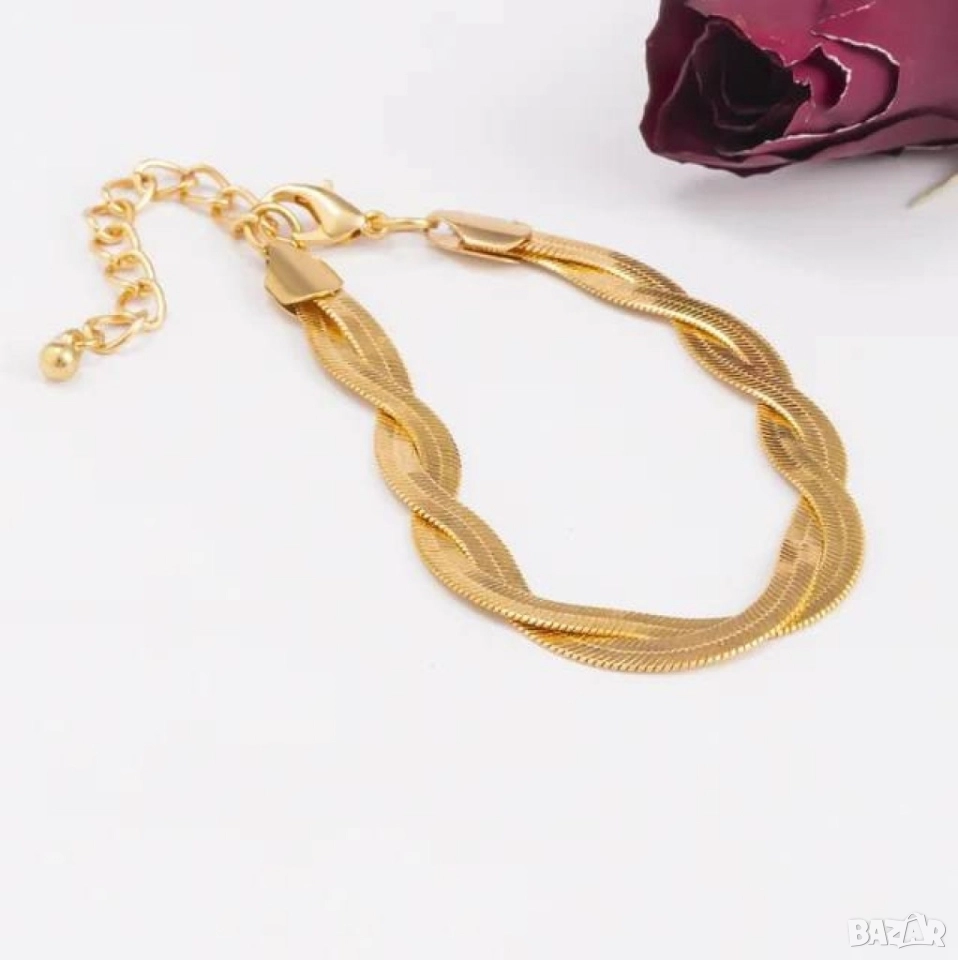 Дамска гривна, усукана плетка с 2 нишки тип рибена кост → Обява 52871101