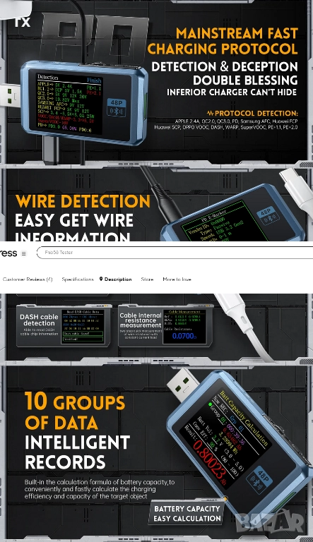 • Може да се използва за откриване на протокол за бързо зареждане, QC2.0 тригер, QC3.0 тригер, Huawei-FCP тригер, Huawei-SCP тригер, Samsung-AFC тригер, PD протокол тригер и т.н.