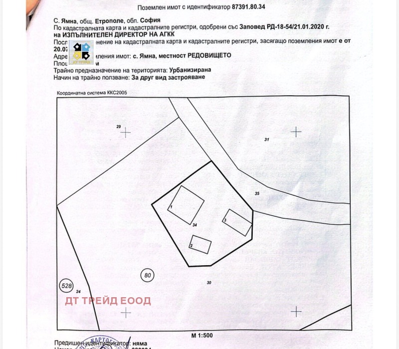 В парцела има масивна къща с разгъната застроена площ 548 кв.м, за основен ремонт, както и по документ има още две постройки (петна за застрояване), което дава отлични възможности за развитие.
