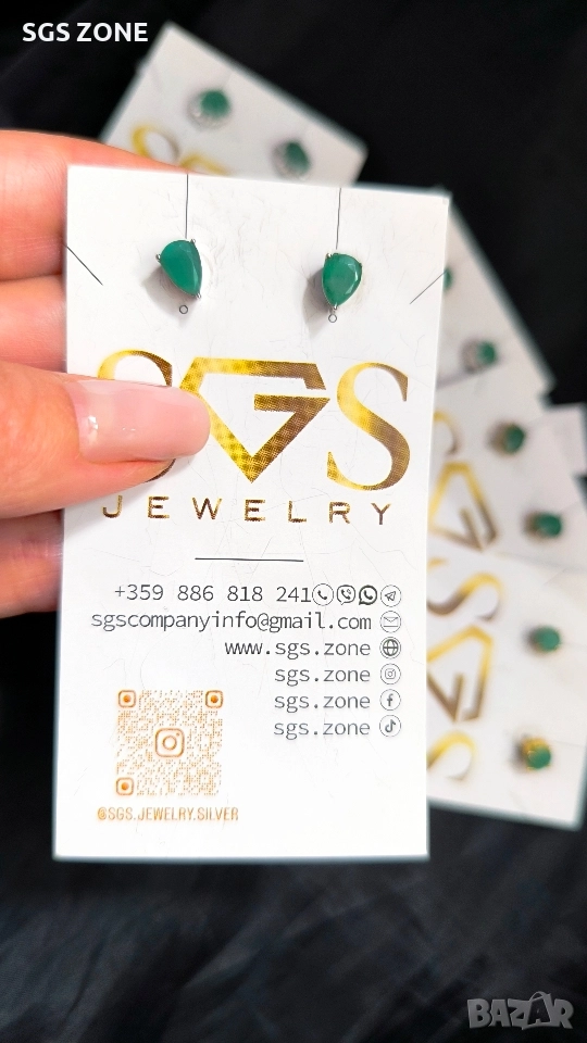 изумруд. Овална форма - 58 лв., кръгла - 49 лв., кръгла с кубичен цирконий - 79 лв., овална с кубичен цирконий - 95 лв., круша - 49 лв. Още снимки и видеа на продукта в Instagram и Facebook sgs.zone, уебсайт sgs.zone. Можем да изпратим допълнителна информация чрез Viber. Изпращане Speedy и Эконт. Шоурум в София, Дондуков, 53. Всички продукти са със сертификати и подаръчна кутия. Продукти имат допълнителни български маркировки