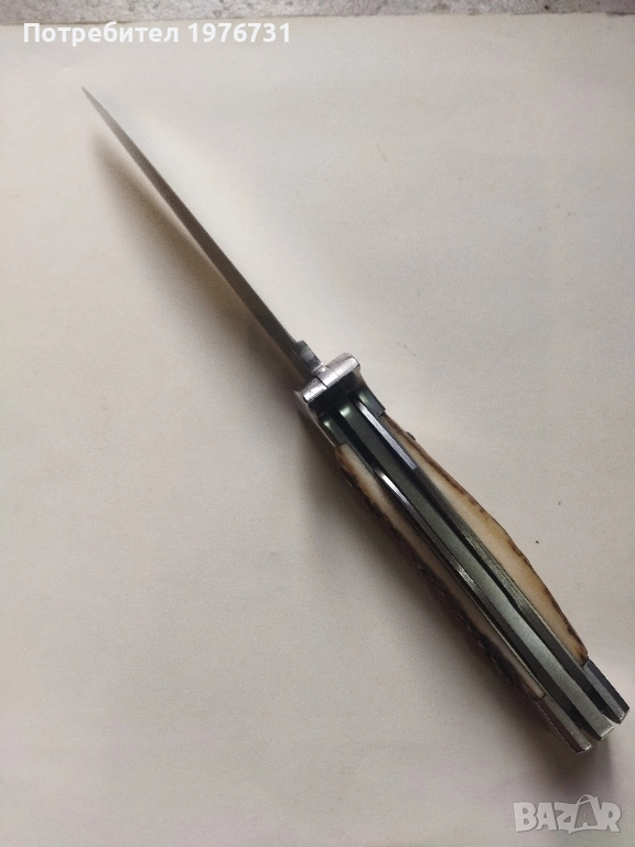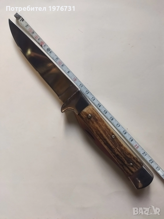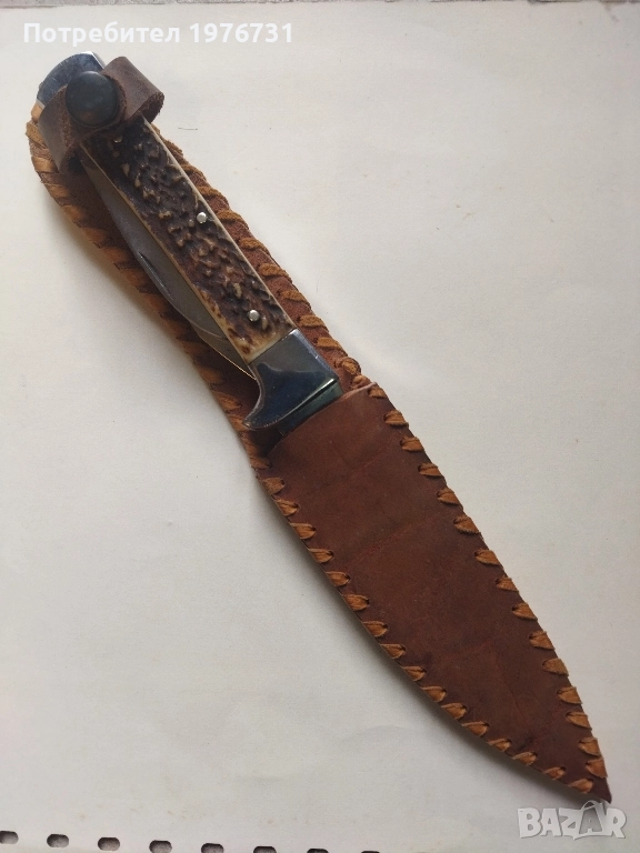 Ножа е отлично запазен, без следи от употреба, луксозно изпълнение, дръжка от еленов рог. Идеален за ползване, колекция или подарък