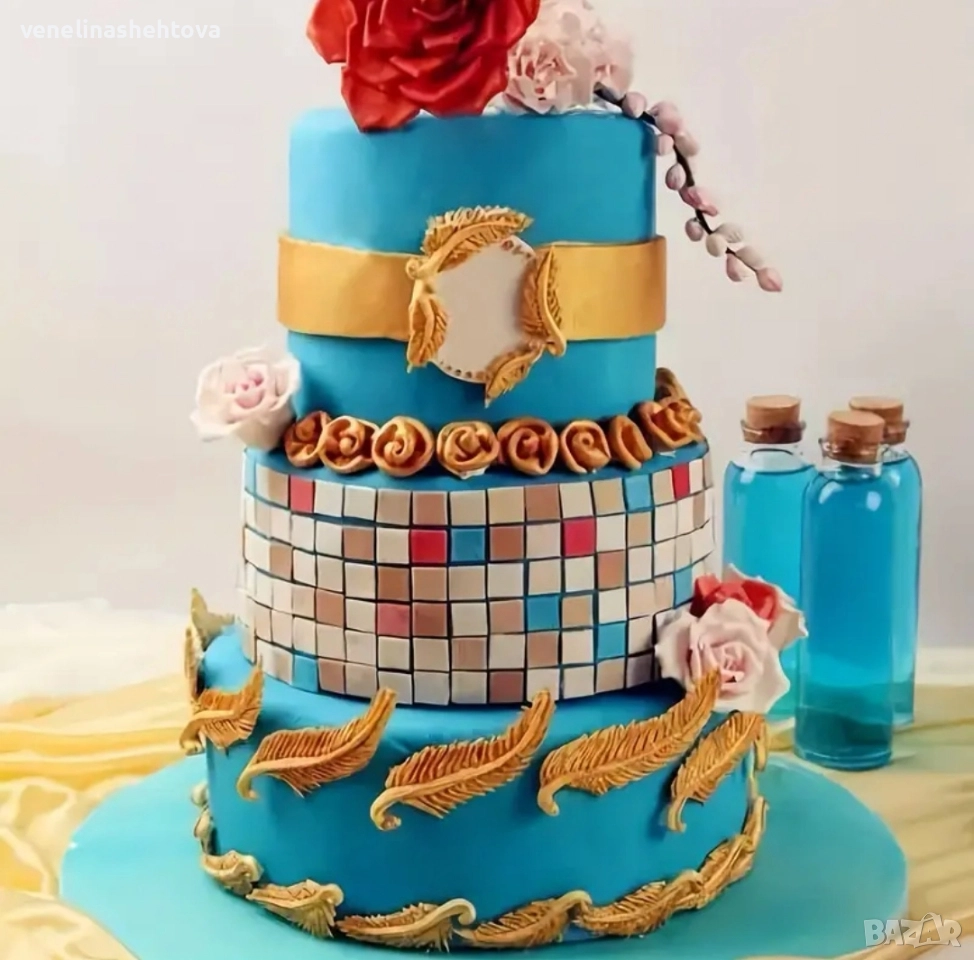 Комплект от 3 броя плочки с квадрати за фондан за декорация на торта