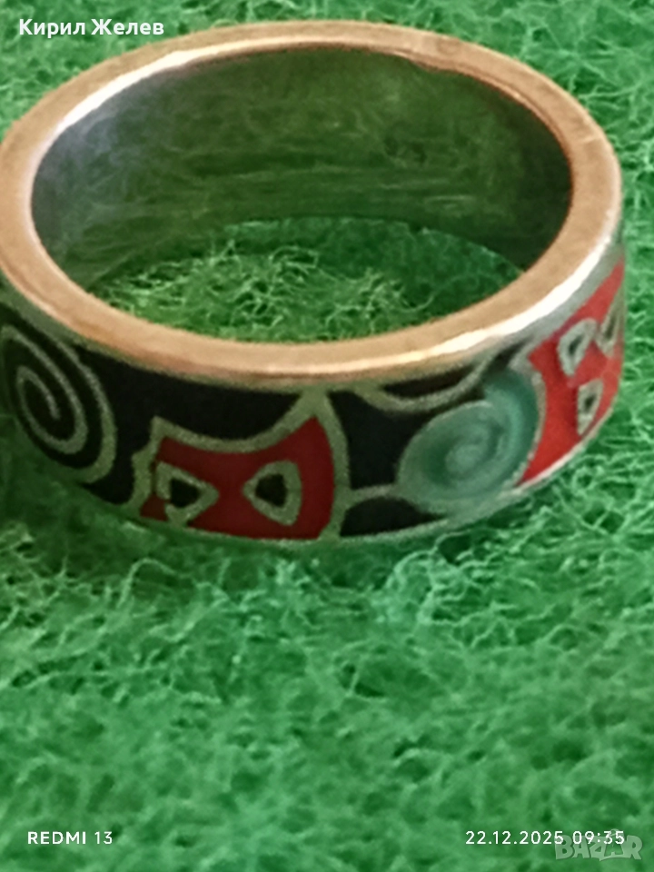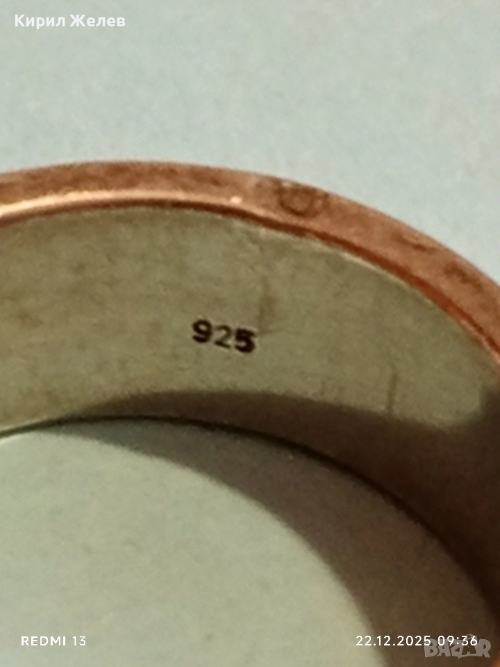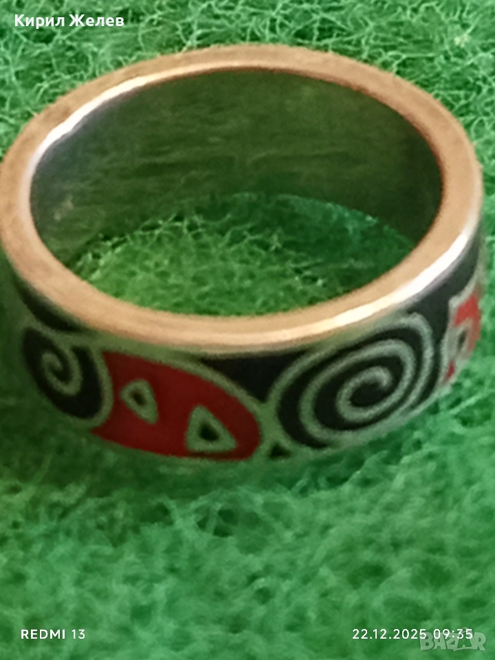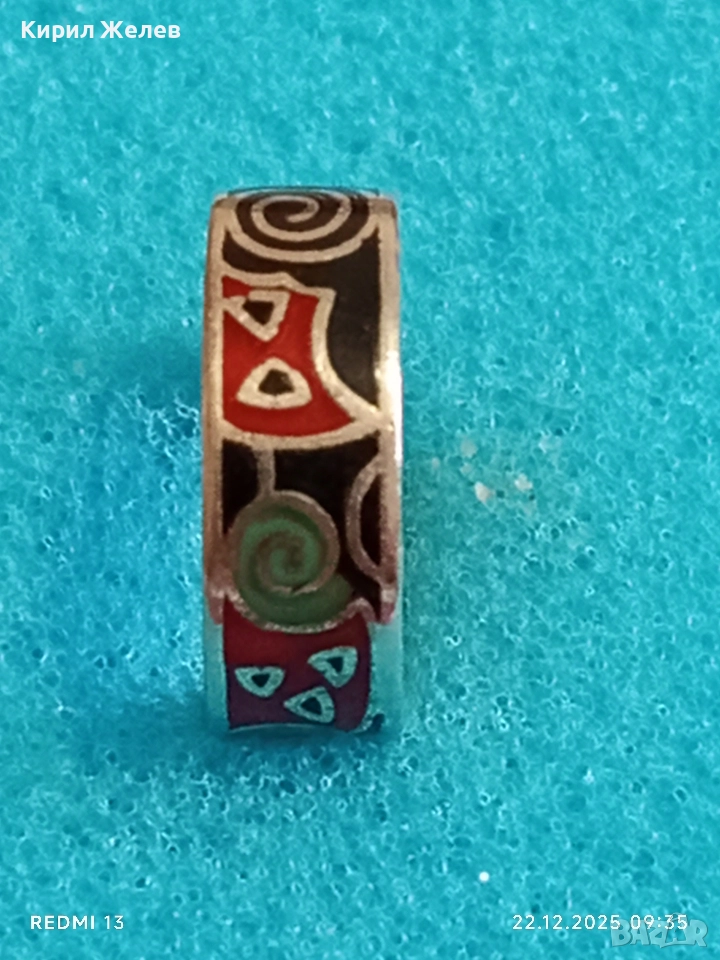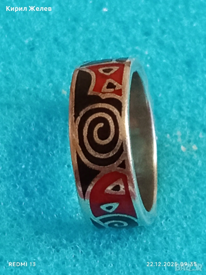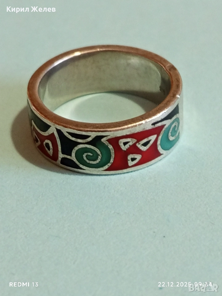 Ефектен сребърен пръстен с емайл красив стилен дизайн 52470