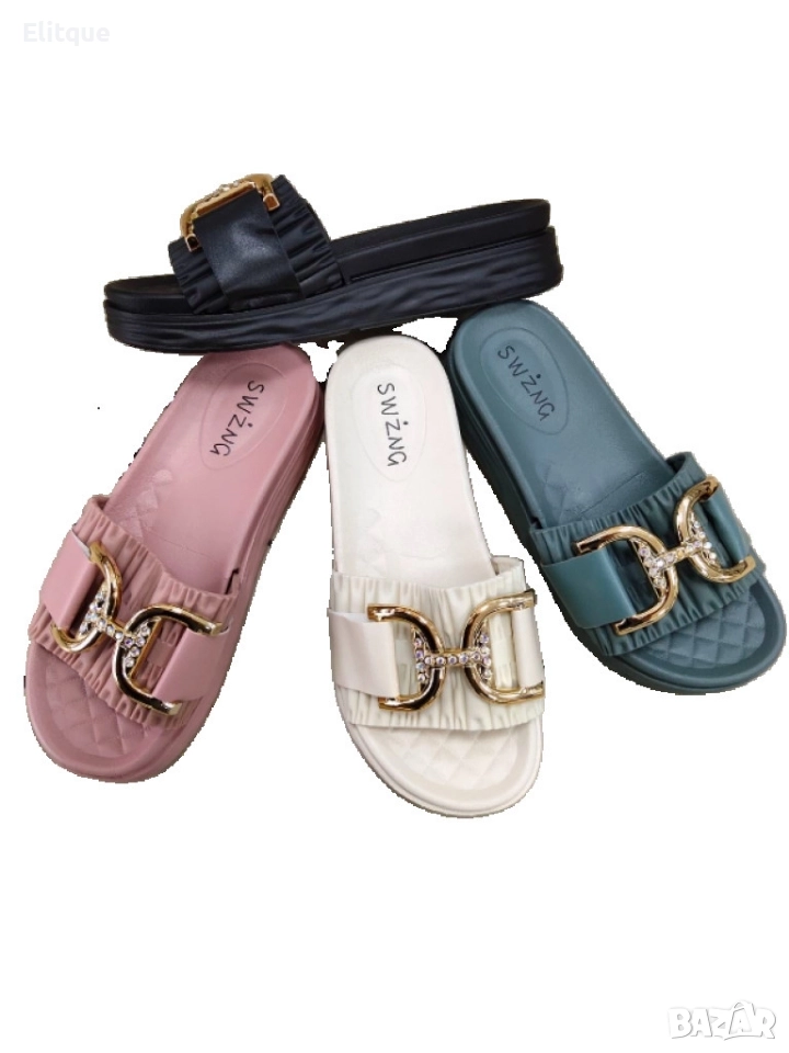 Луксозни дамски чехли с елегантни златисти елементи