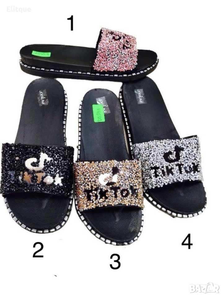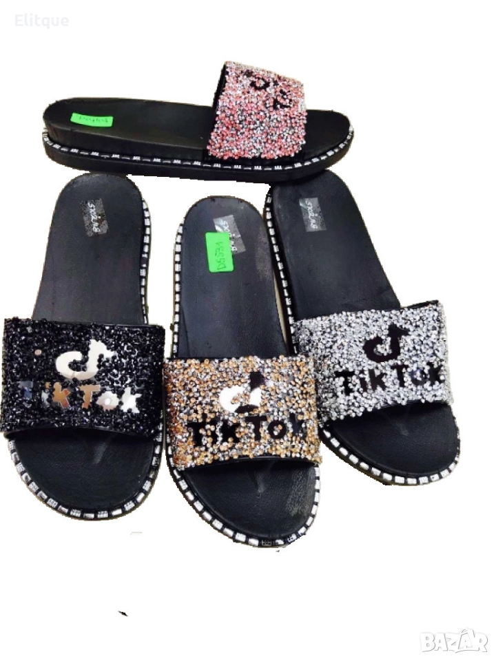 Нашите ТикТок дамски плажни чехли с кристали представляват комбинация от модерен дизайн и елегантност, перфектни за създаване на незабравими летни моменти.Украсени с кристали, нашите чехли предлагат блясък и елегантност. Изработени от меки и леки материали, чехлите ви осигуряват комфорт и удобство, докато се наслаждавате на летните дни на брега на морето или в басейна. Стабилната конструкция и висококачествените материали гарантират дълготрайност на чехлите, които ще ви радват сезон след сезон. Декорация: ТикТок надпис и кристали за блясък и стил; Вариант 1: Черни с бяло-розови кристали; Вариант 2: Черни; Вариант 3: Черни със златисо-бели кристали; Вариант 4: Черни със сребристи кристали; Размери: 36, 37, 38, 39, 40, 41.