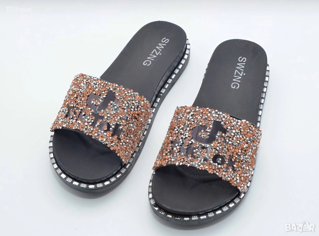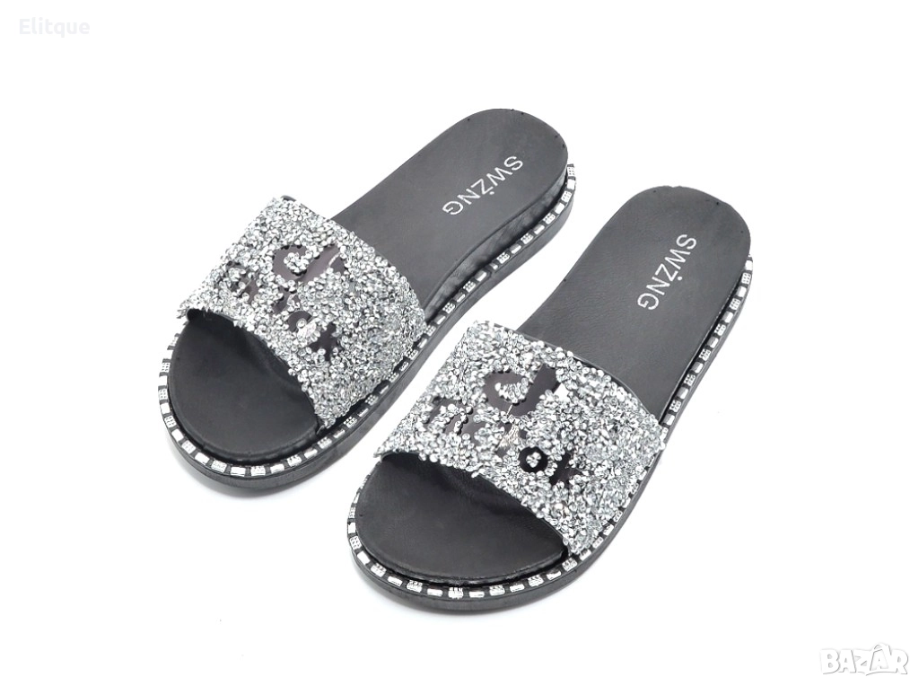 Блестящи дамски плажни чехли с кристали за летни ТикТок моменти на брега и пясъка