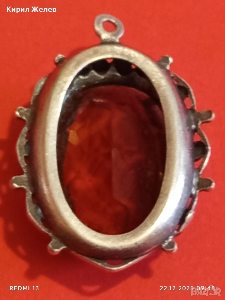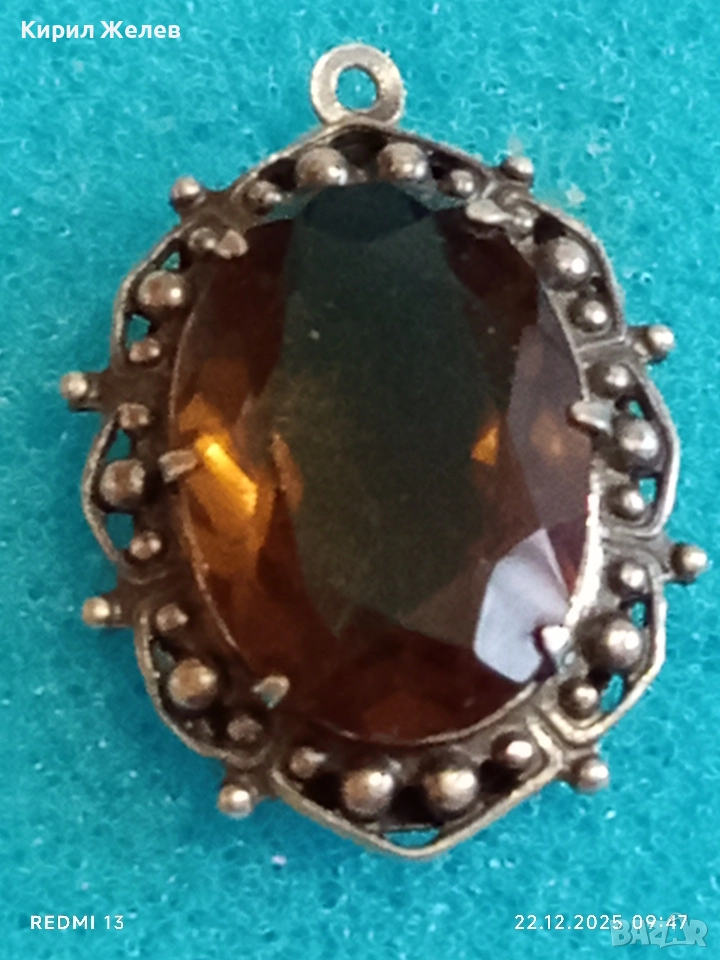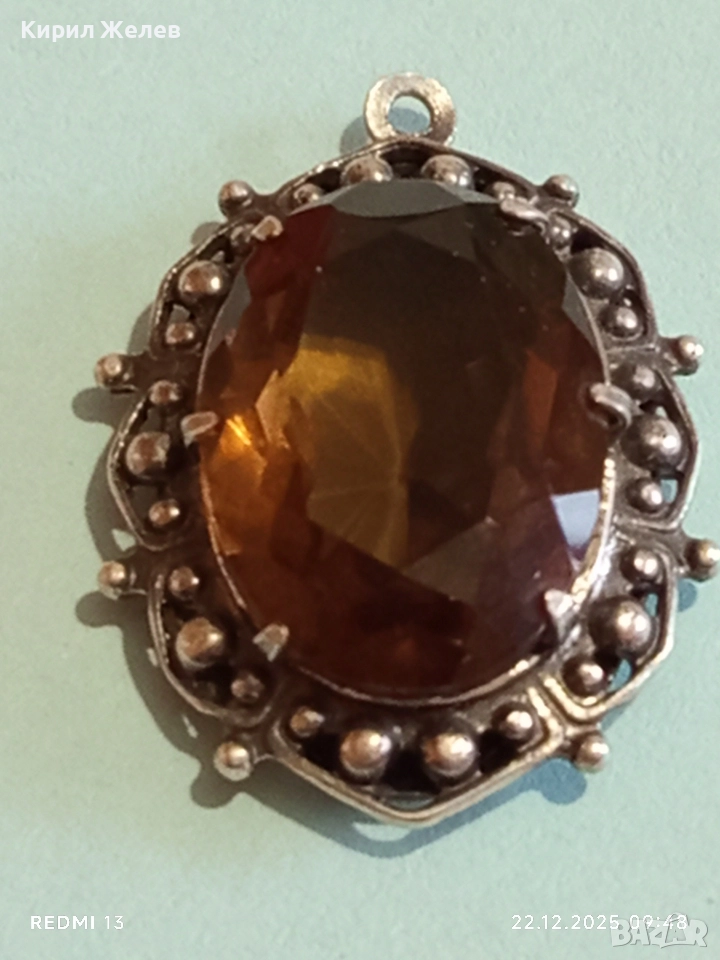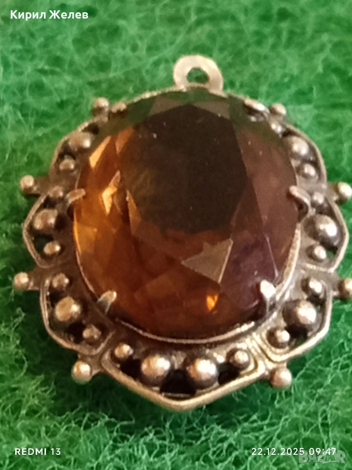 Винтидж сребърен медальон Арт Нуво стил с овален ОПУШЕН КВАРЦ ръчна майсторска изработка 13668