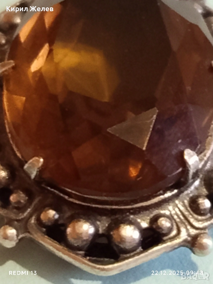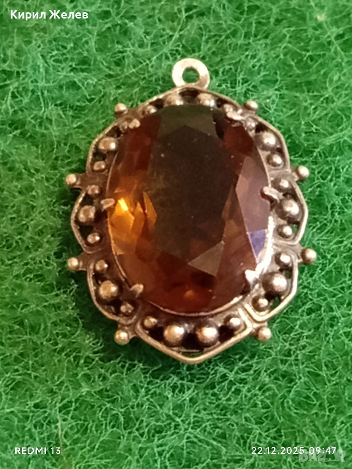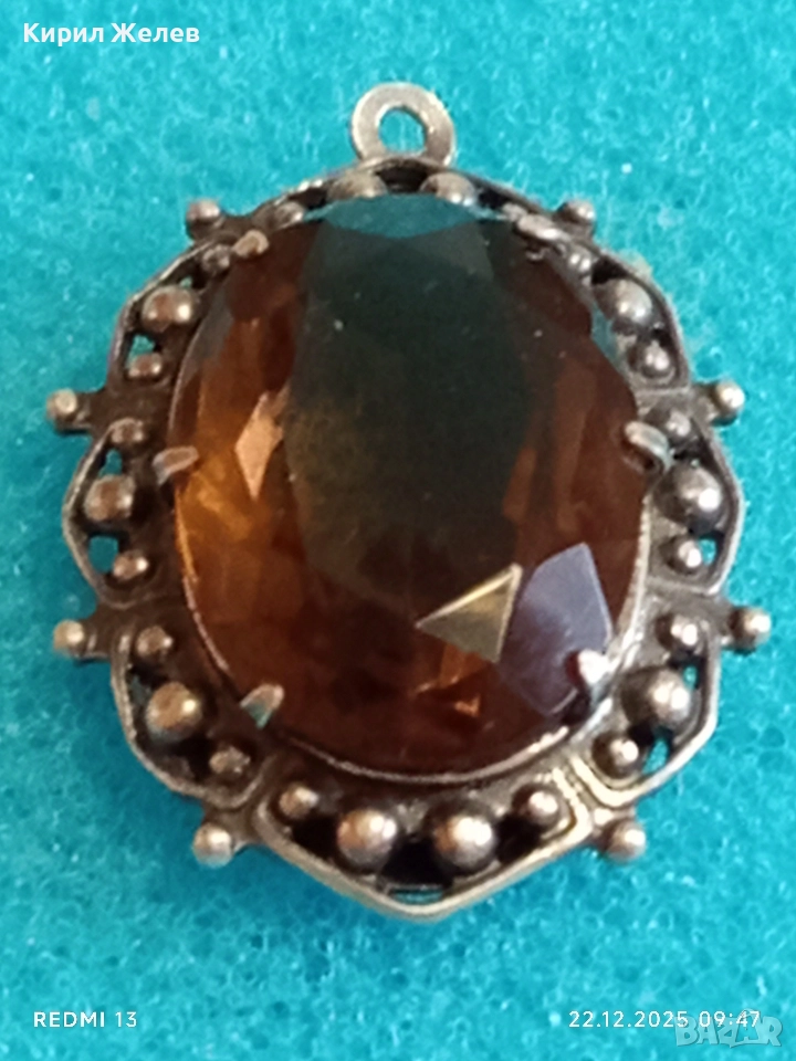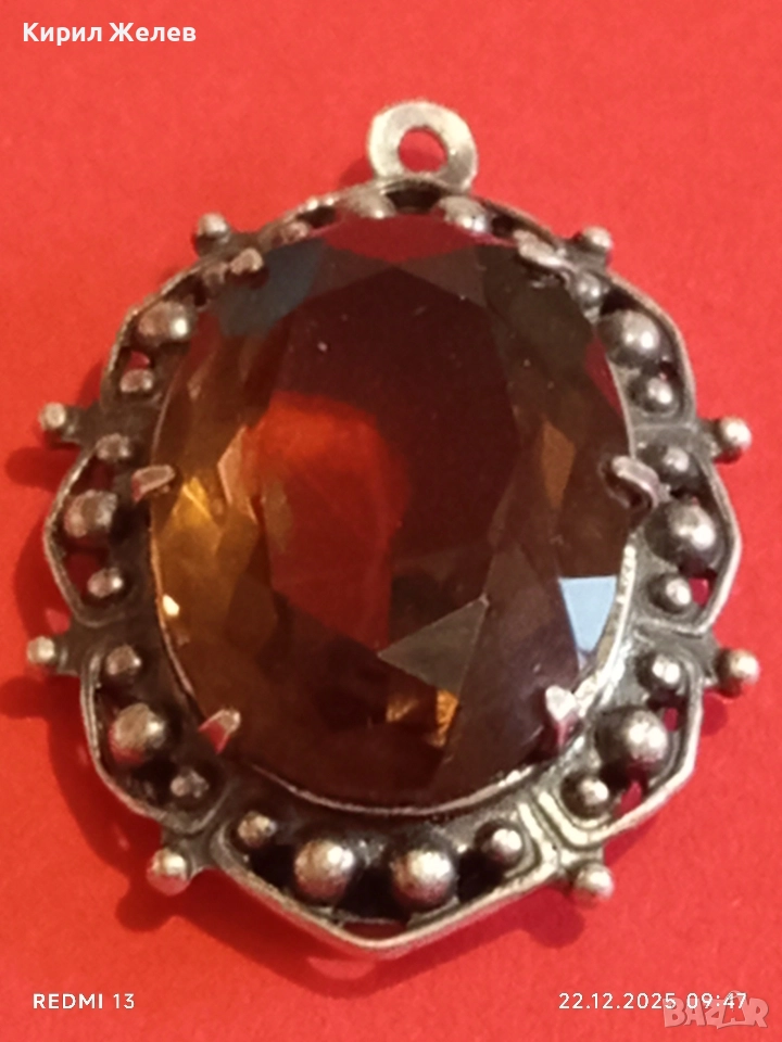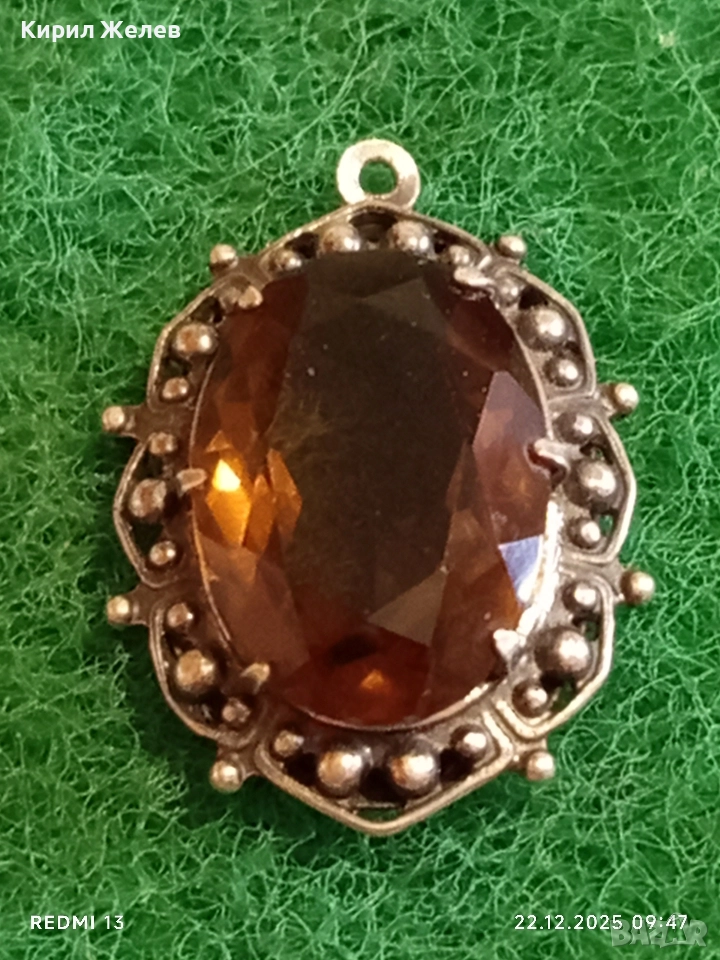 Винтидж сребърен медальон Арт Нуво стил с овален ОПУШЕН КВАРЦ ръчна майсторска изработка 13668