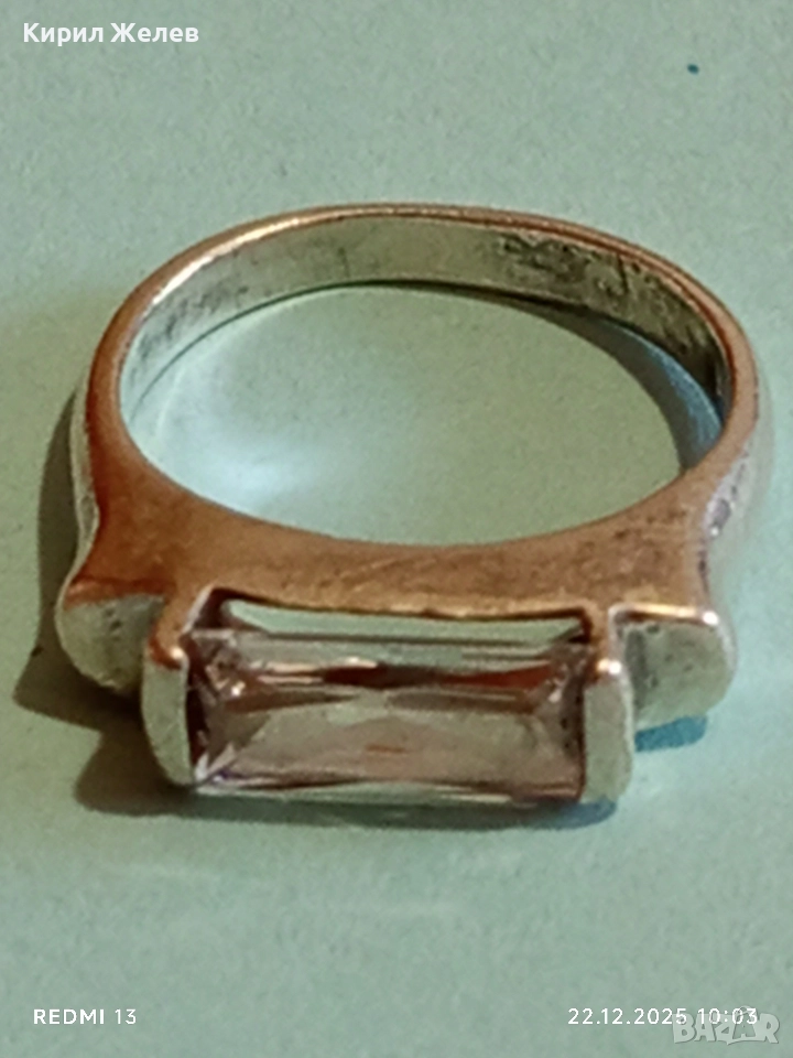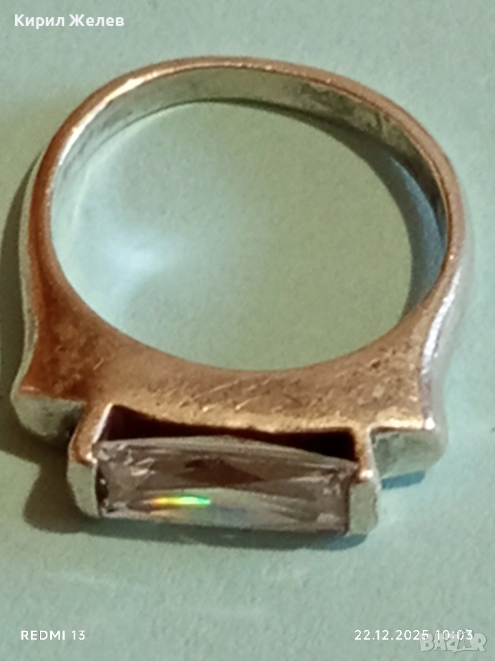 Изчистен елегантен сребърен пръстен тип Багет с кристал подходящ аксесоар за ежедневието 44320