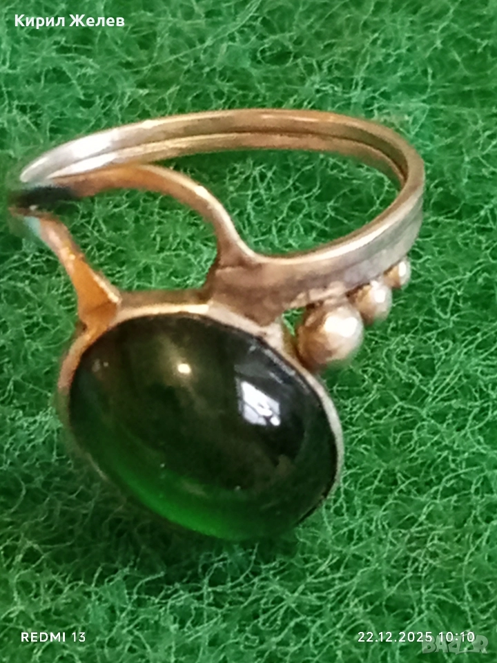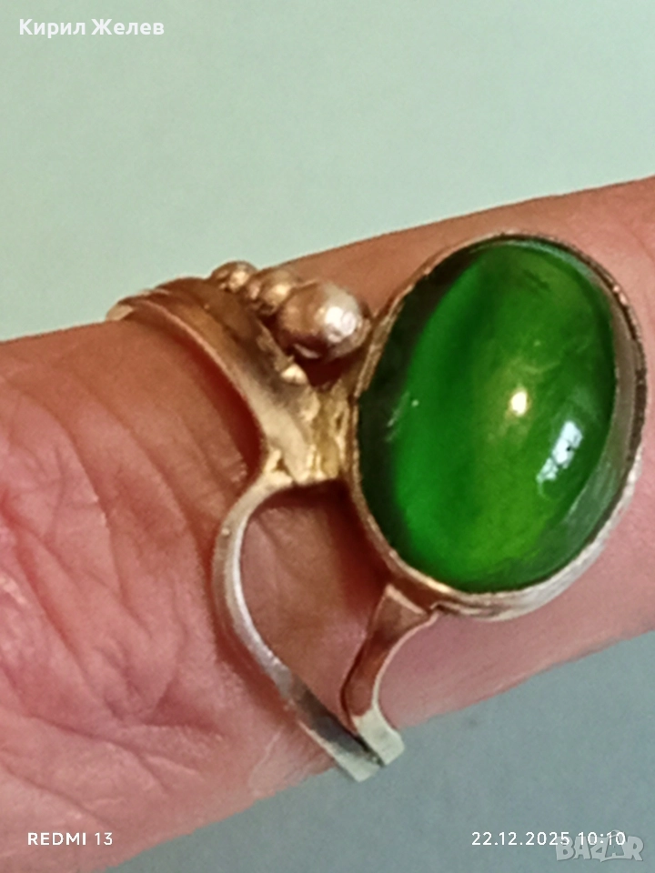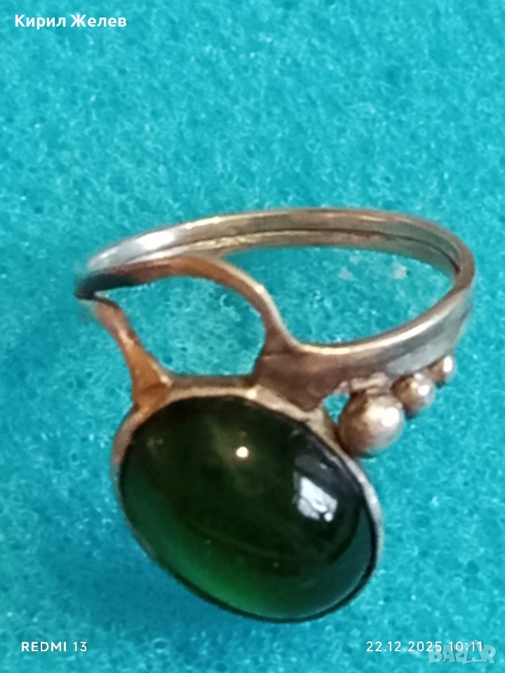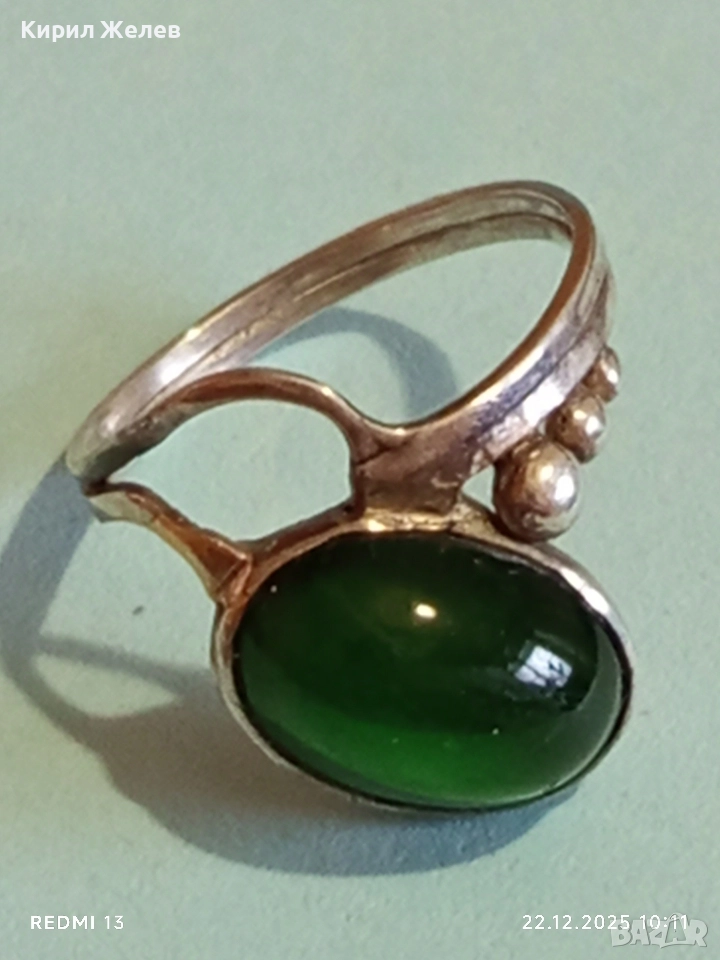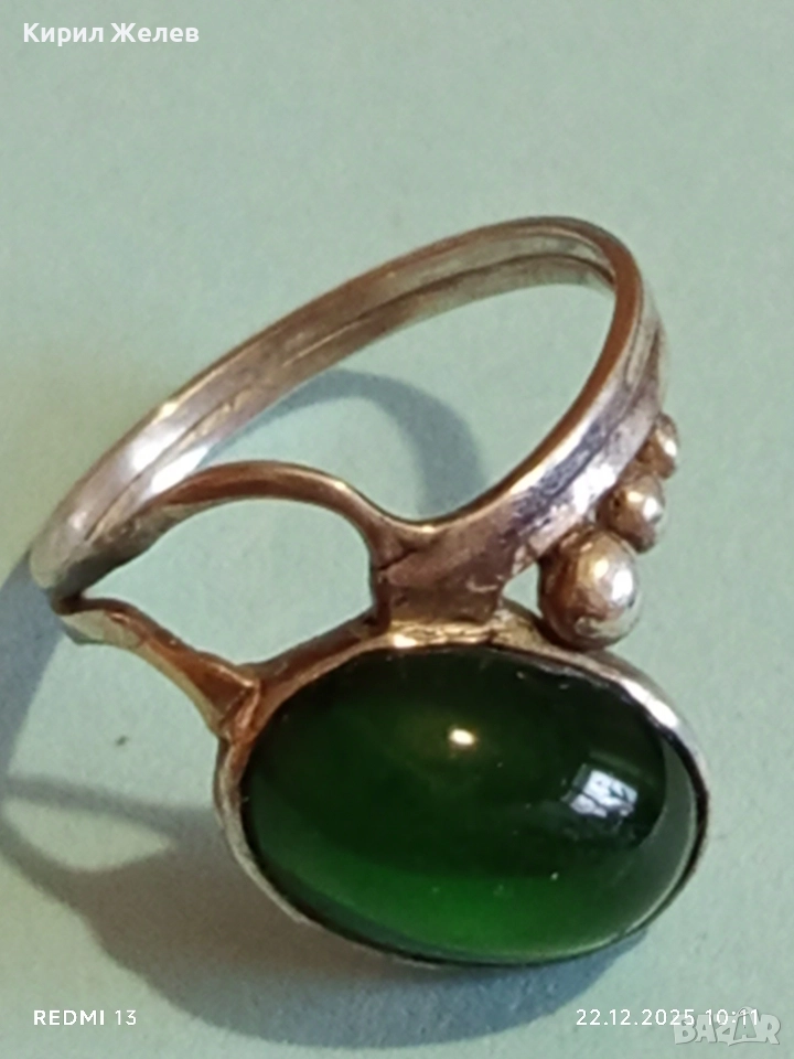 Винтидж сребърен пръстен с ювелирно фасетиран МАЛАХИТ ювелирна изработка 14955