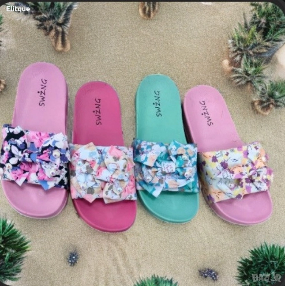 Нашите чехли предлагат комбинация от ярки и живи цветове, които създават уникален и весел дизайн, подходящ за всяко лятно приключение. Със своите ярки и живи цветове, нашите чехли ви предлагат уникално изживяване, което ще ви вдъхнови да се насладите на всеки момент от лятото. Изработени от леки и дишащи материали, нашите чехли осигуряват комфорт и удоволствие при всяка стъпка, като ви позволяват да се наслаждавате на дълги часове игра и забавление на плажа. С уникалния си дизайн, нашите чехли ще бъдат неизбежният фокус на всяко плажно парти или лятно събитие. Вариант 1: Бледо-розово с тъмни цветни мотиви; Вариант 2: Бледо-червен със светли цветни мотиви; Вариант 3: Бледо-зелен със светли цветни мотиви; Вариант 4: Бледо-розов със светли ветни мотиви; Размери: 36, 37, 38, 39, 40, 41.