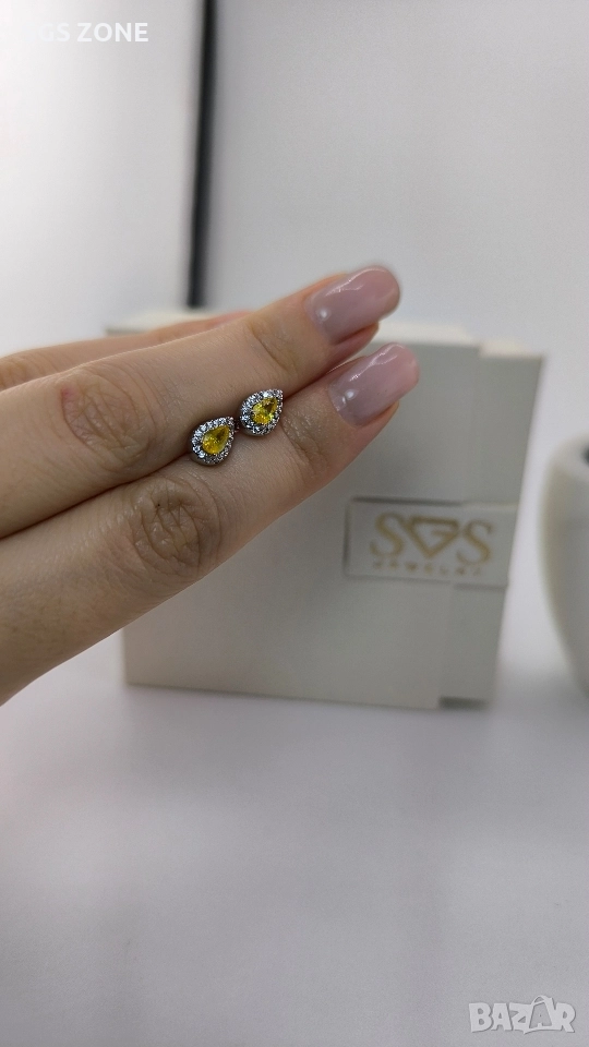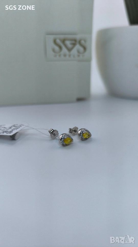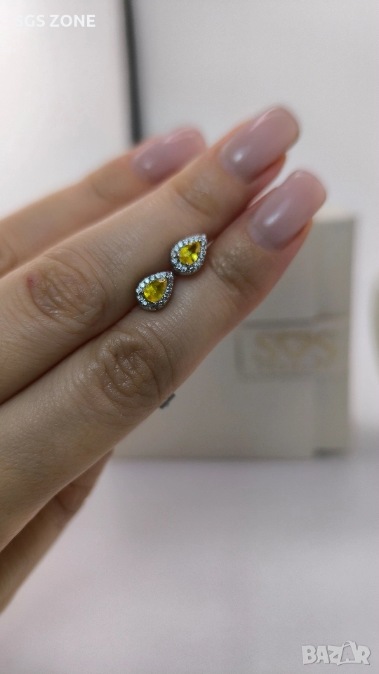 Сребърни обеци с необичаен жълт сапфир. Още снимки и видеа на продукта в Instagram и Facebook sgs.zone, уебсайт sgs.zone. Можем да изпратим допълнителна информация чрез Viber. Изпращане Speedy и Эконт. Шоурум в София, Дондуков, 53. Всички продукти са със сертификати и подаръчна кутия. Продукти имат допълнителни български маркировки