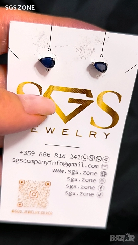 Сребърни обеци със син сапфир. Още снимки и видеа на продукта в Instagram и Facebook sgs.zone, уебсайт sgs.zone. Можем да изпратим допълнителна информация чрез Viber. Изпращане Speedy и Эконт. Шоурум в София, Дондуков, 53. Всички продукти са със сертификати и подаръчна кутия. Продукти имат допълнителни български маркировки