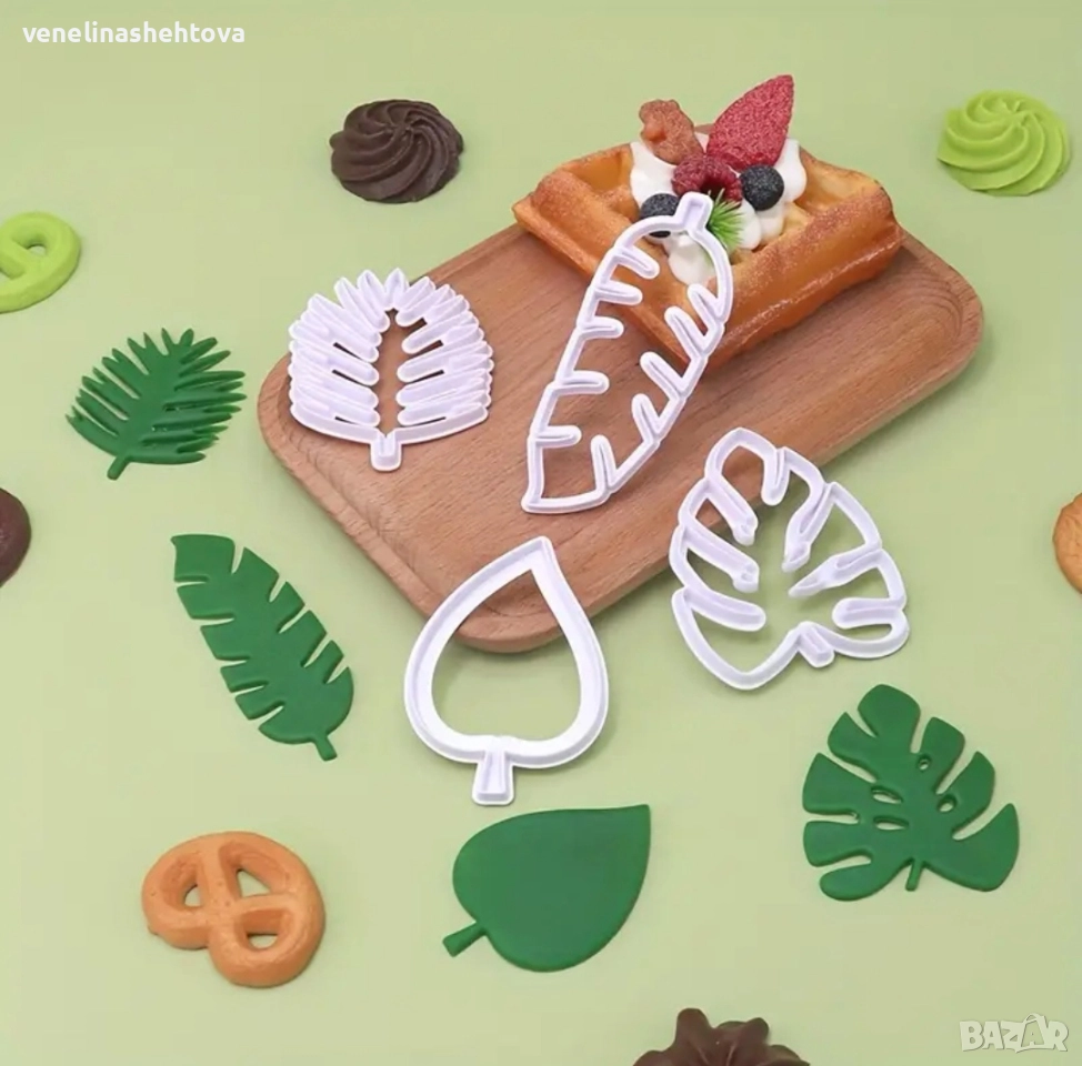 4 броя тропически листа пластмасови резци резец фондан декорация торта бисквитки тесто мъфини → Обява 52872630
