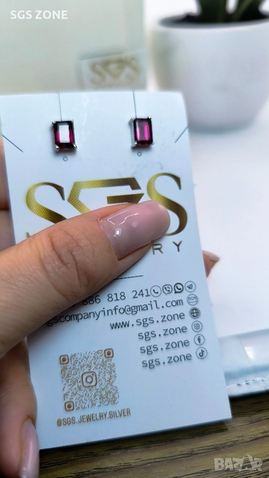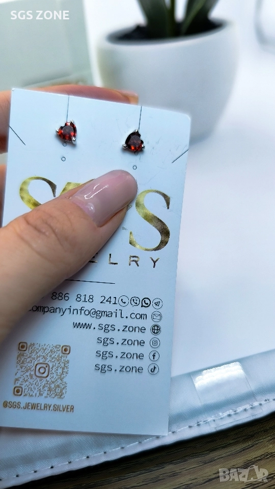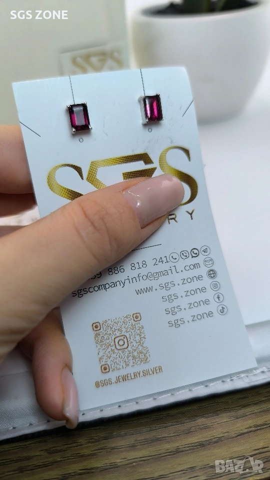 Сребърни обеци с гранат. Още снимки и видеа на продукта в Instagram и Facebook sgs.zone, уебсайт sgs.zone. Можем да изпратим допълнителна информация чрез Viber. Изпращане Speedy и Эконт. Шоурум в София, Дондуков, 53. Всички продукти са със сертификати и подаръчна кутия. Продукти имат допълнителни български маркировки