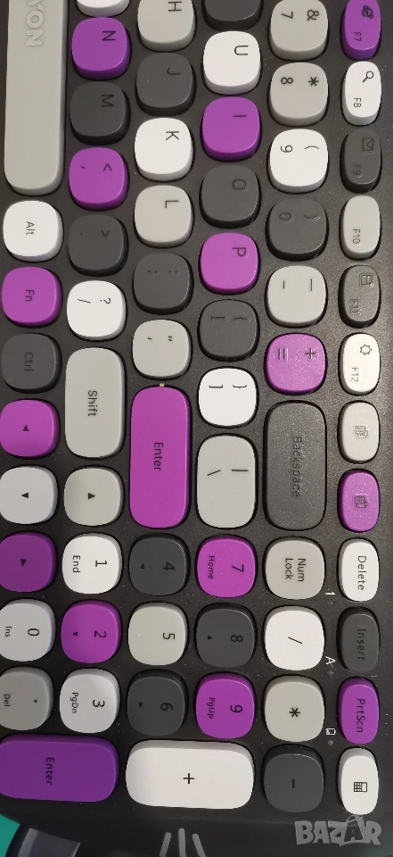 Клавиатурата е много сладка и много подходяща за подарък на жена! С котешка тема, има мустачки, ушички и следи от лапички. Тази е Черно и виолетово. Мишката заспива след няколко минути бездействие и се събужда с просто натискане на някой от бутоните. Клавиатурата не заспива. Има валидна 2г ГАРАНЦИЯ към Технополис и касова бележка!