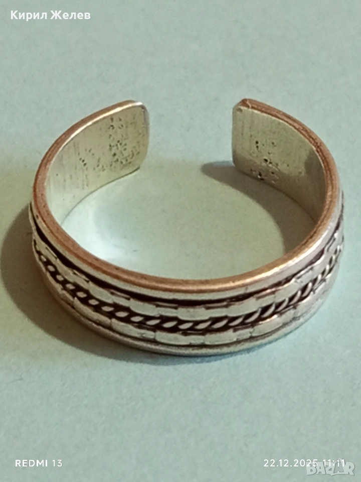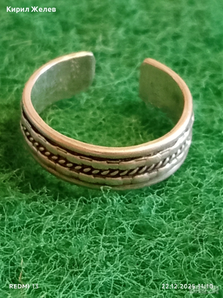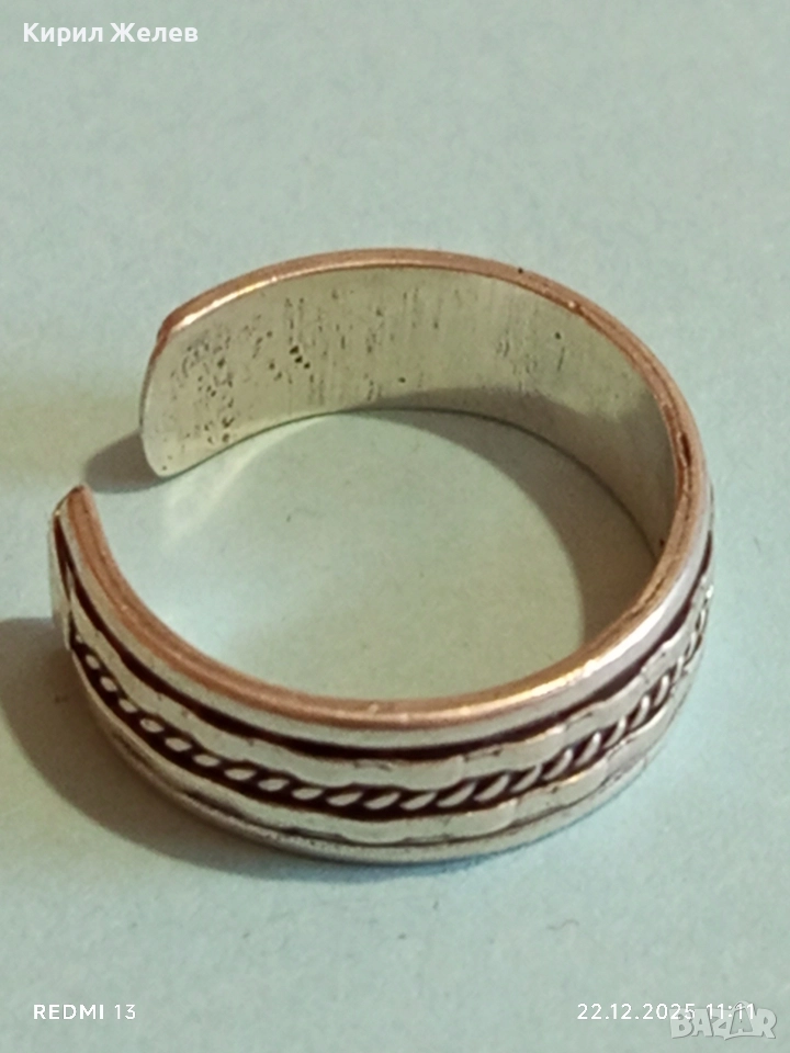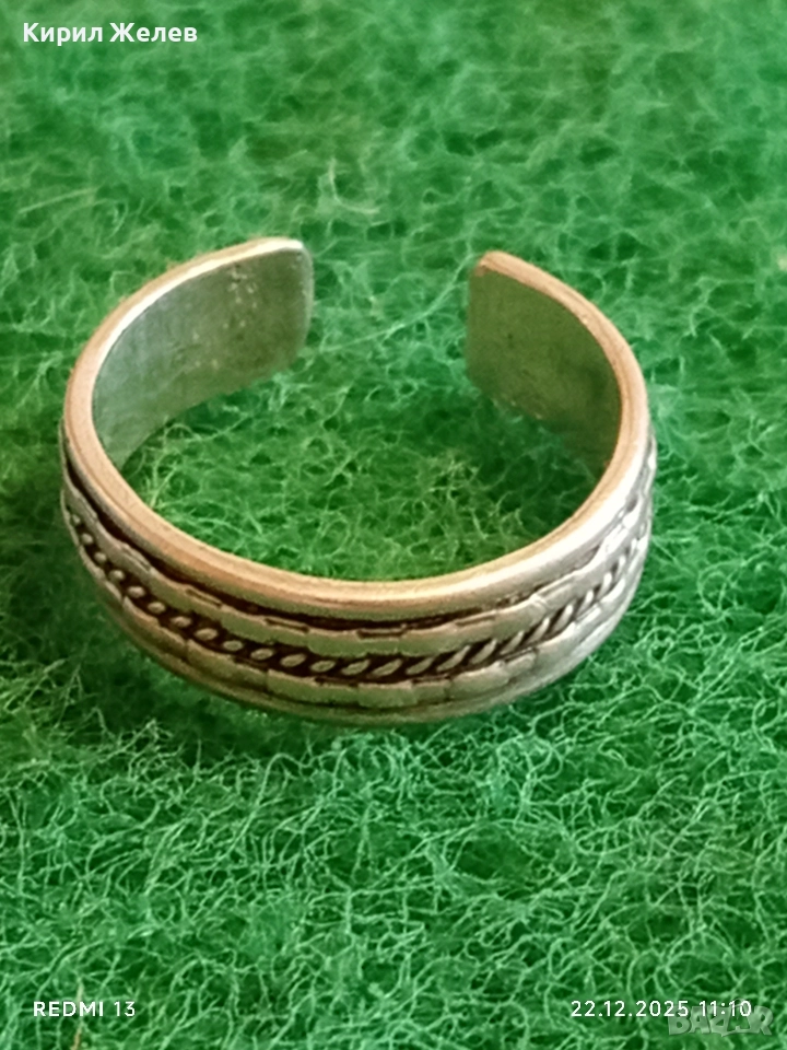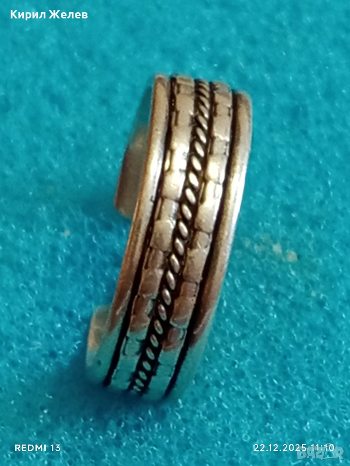 Сребърен пръстен Бохо стил с плетка въже отворен стилен дизайн 44026