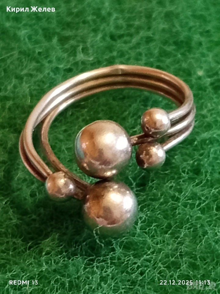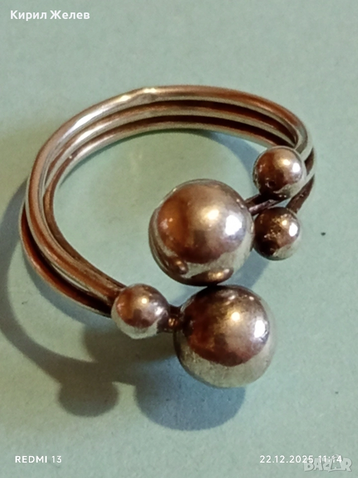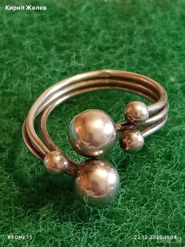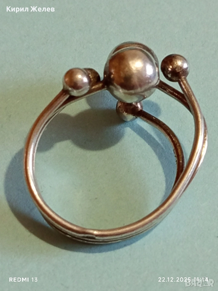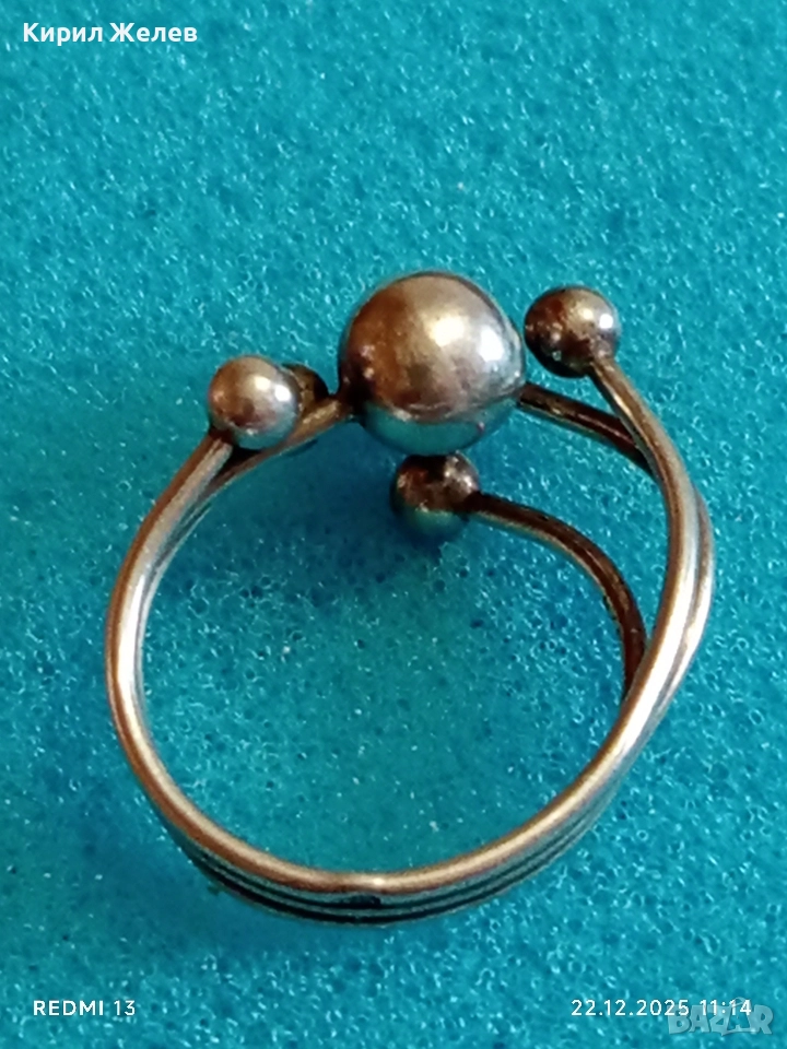 Сребърен пръстен модерен и абстрактен вид майсторска изработка 52489