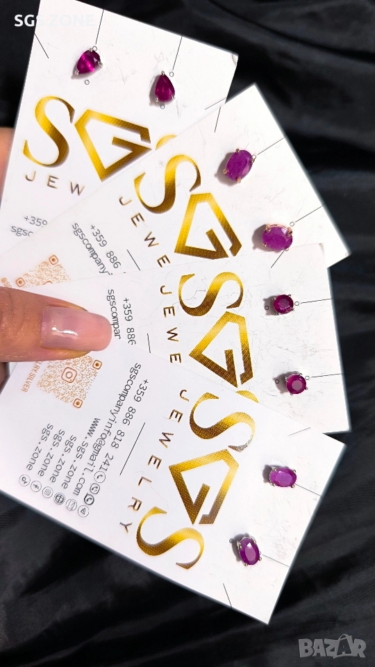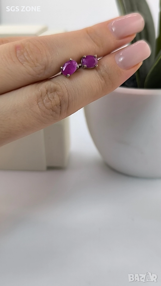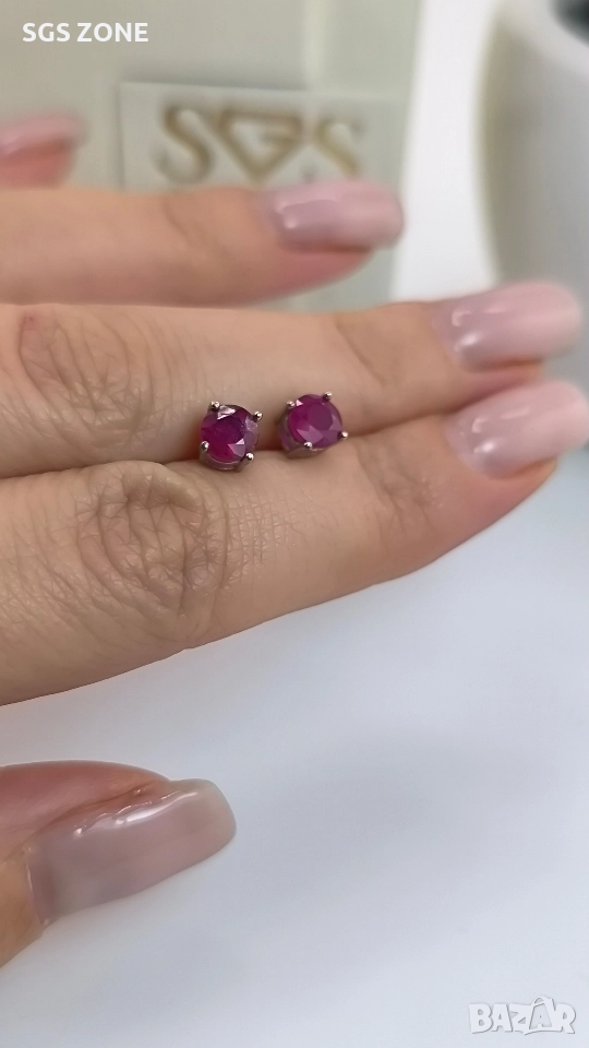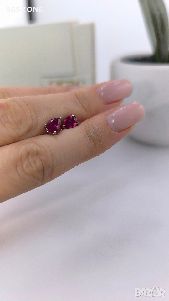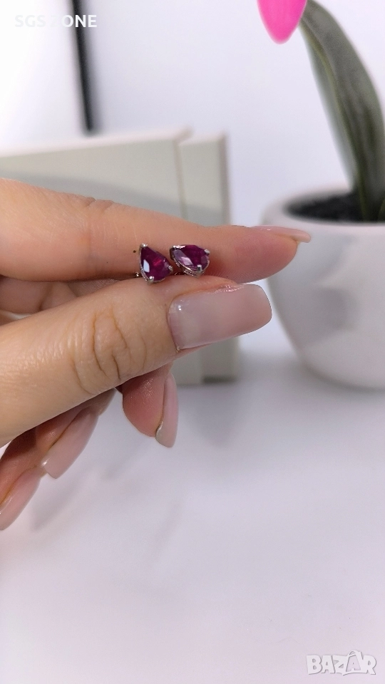 Сребърни обеци с рубин. Кръгла форма - 49 лв., овална със златно покритие - 69 лв., овална - 50 лв., круша - 49 лв. Още снимки и видеа на продукта в Instagram и Facebook sgs.zone, уебсайт sgs.zone. Можем да изпратим допълнителна информация чрез Viber. Изпращане Speedy и Эконт. Шоурум в София, Дондуков, 53. Всички продукти са със сертификати и подаръчна кутия. Продукти имат допълнителни български маркировки