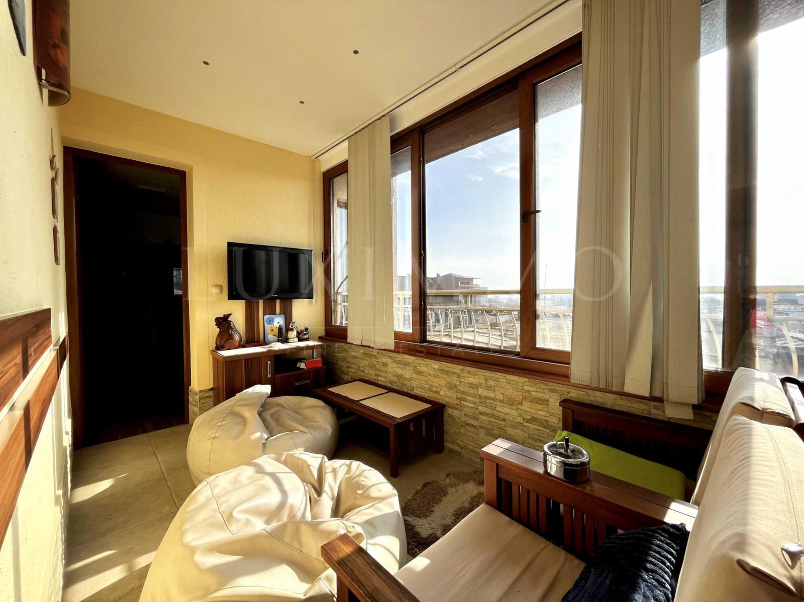 Апартаментът се предлага напълно обзаведен с всички необходими мебели и уреди, отоплението е с климатици. Сградата е газифицирана.