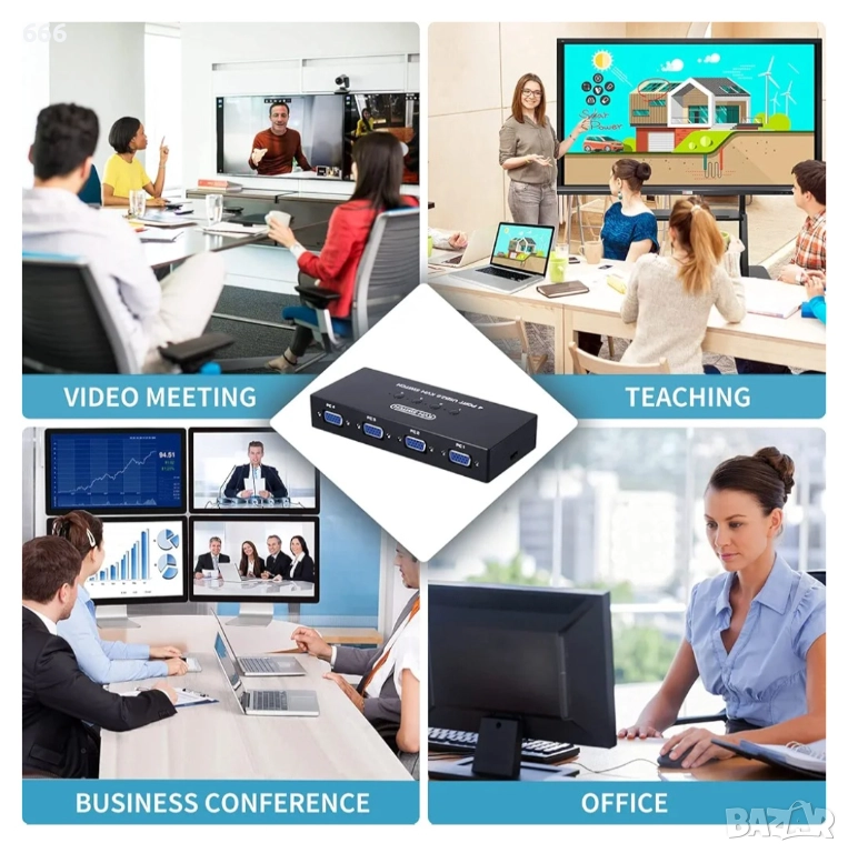 Висока резолюция - Този KVM VGA превключвател е с резолюция до 1920 * 1440, а също така поддържа и супер широкоекранен дисплей. Поддържа DDC и висококачествена автоматична идентификация. Plug and Play, не е необходим драйвер или външно захранване.