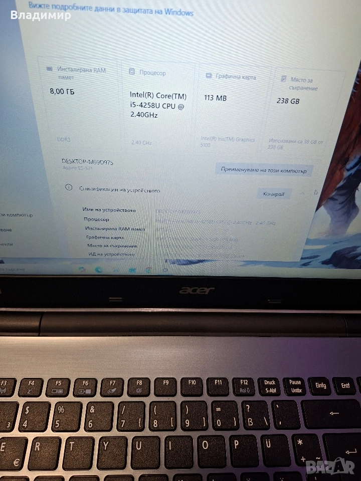 Acer Aspire E5 571-i5 4258u/8гб/256гб ссд → Обява 52873406