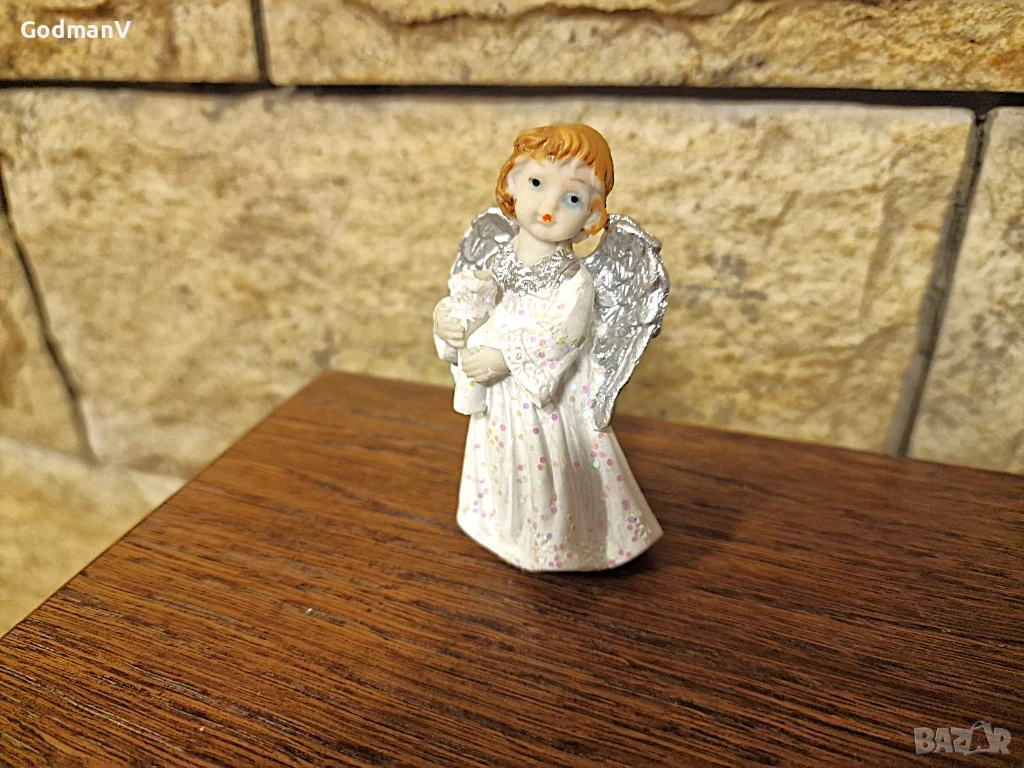 Продавам Малка статуетка на ангелче с нежни детайли и фино изработени крила. Подходяща за декорация на дом, рафт или нощно шкафче, както и за мил подарък с послание за закрила и спокойствие.