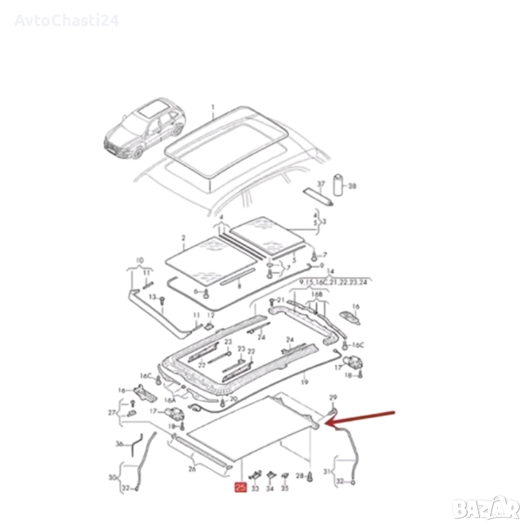Щора с водачи за панорамен таван съвместим с: