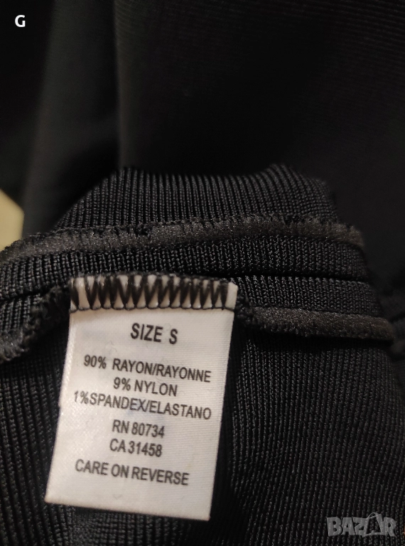 Роклята е еластична и плътна,извайва тялото и пада тежко.Дължината и е до средата на прасеца.Има цепка отзад до коляното.Закопчава се с цип на гърба.Малко е умалена и ще седи прекрасно и на човек с XS размер.Без следи от употреба е,не е обличана дори и веднъж.