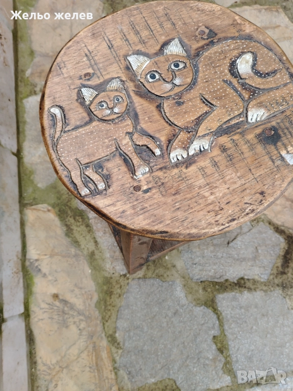 Табуретка дървена с котки 50, 30см → Обява 52874346