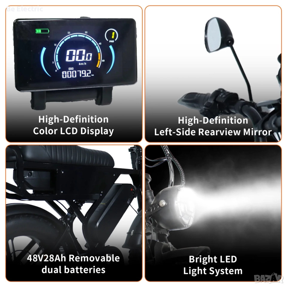 Максимална скорост: 25 км/ч EU - 50км/ч