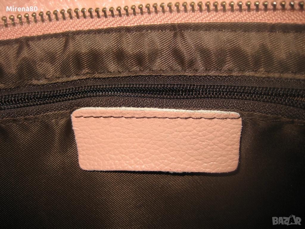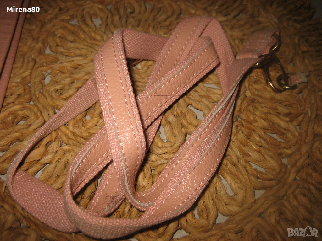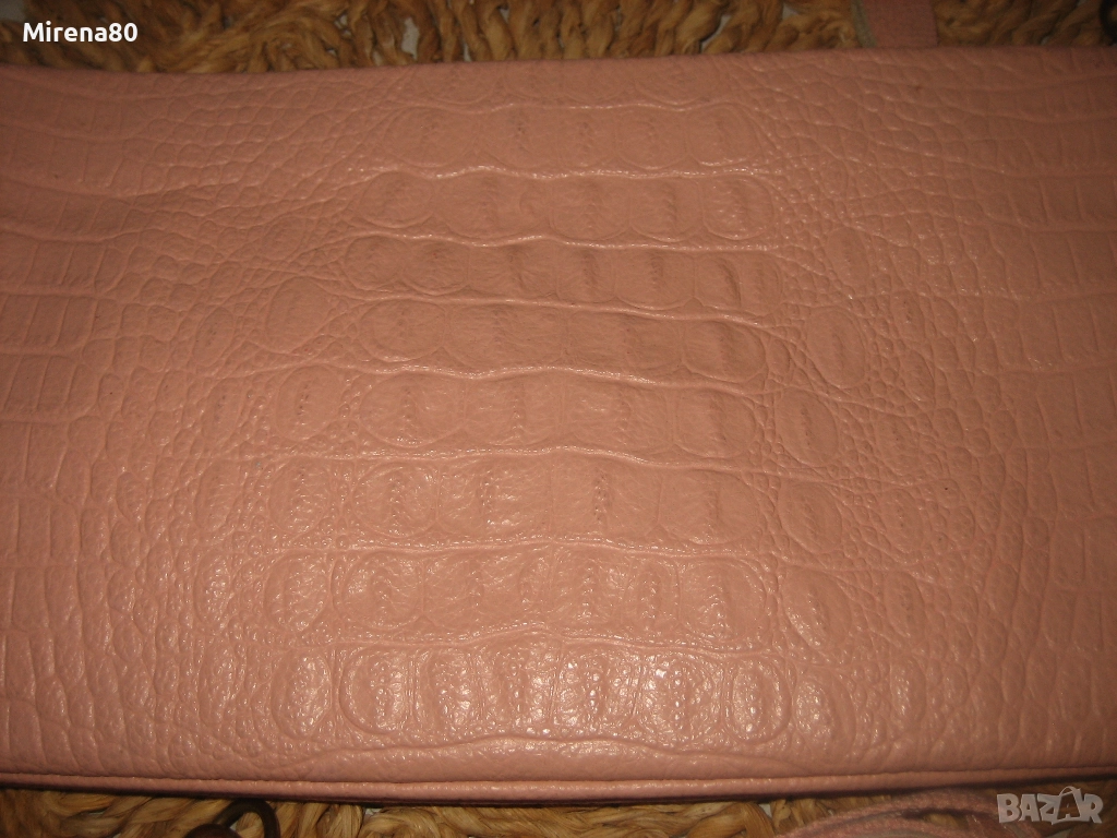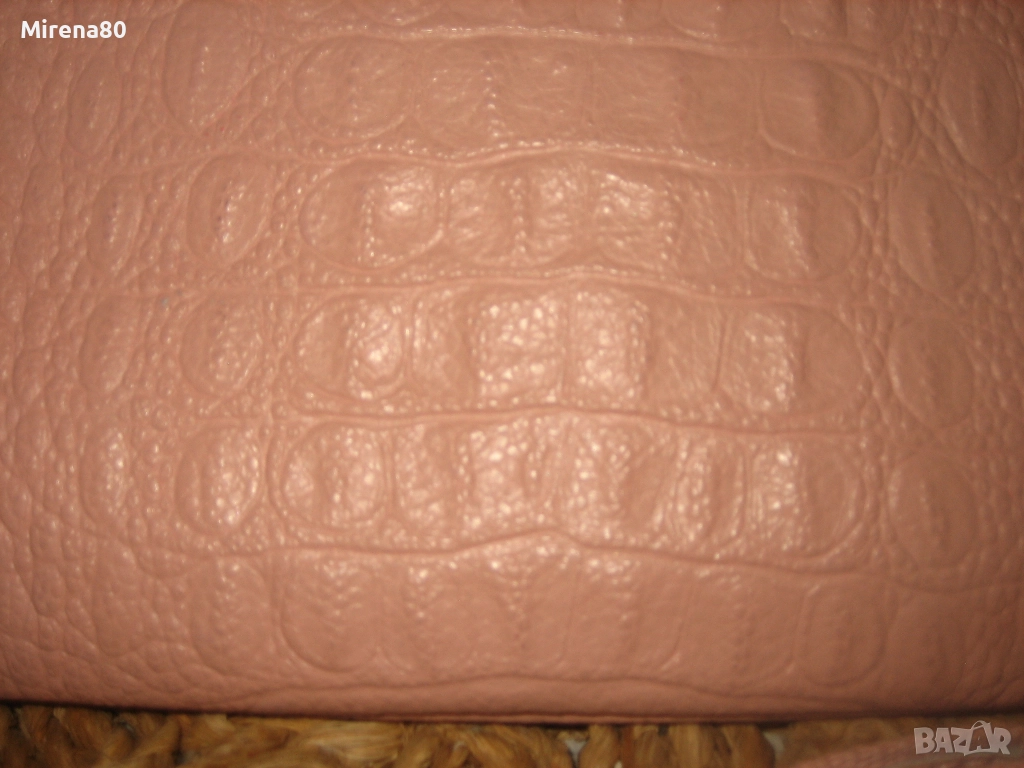 Чанта - клъч (или голям несесер) от естествена кожа в млечнорозов цвят. Обработена като крокодилска - много ефектна и впечатляваща. Размери - 30/16 см, има и дълга дръжка. Отлично