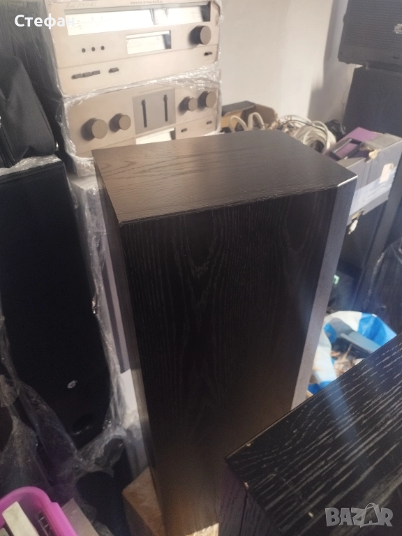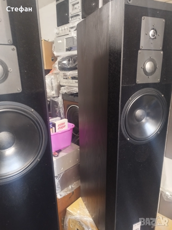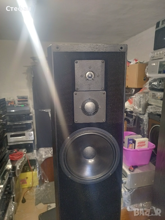 Предният панел е завършен с кадифе. Около HF и MF високоговорителите има специална перфорирана вложка за предотвратяване на честотни смущения. Отлично състояние, всичко е