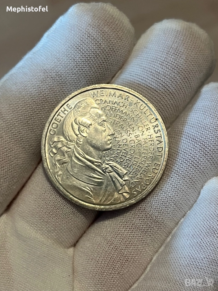 10 марки 1999 г, 250 г от рождението на Гьоте, Германия - сребърна монета